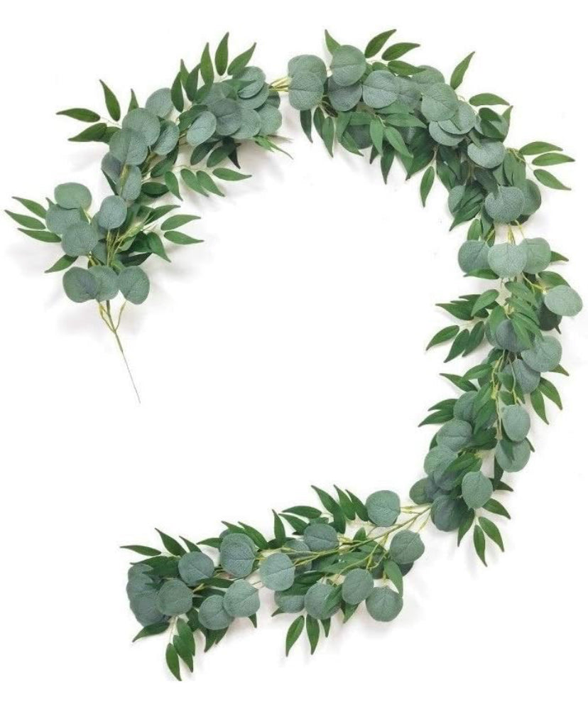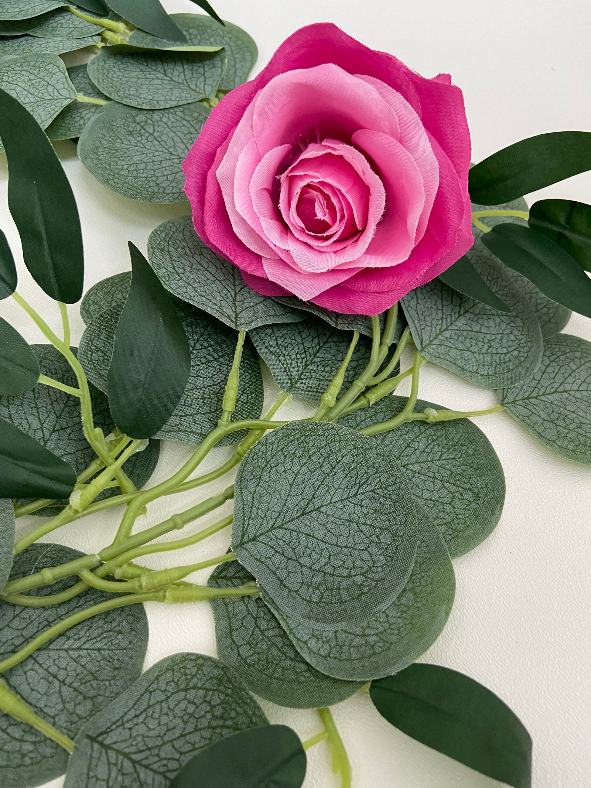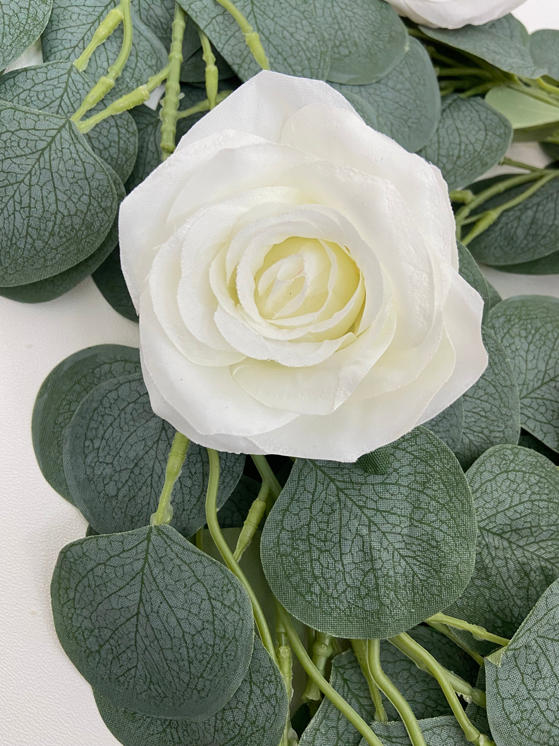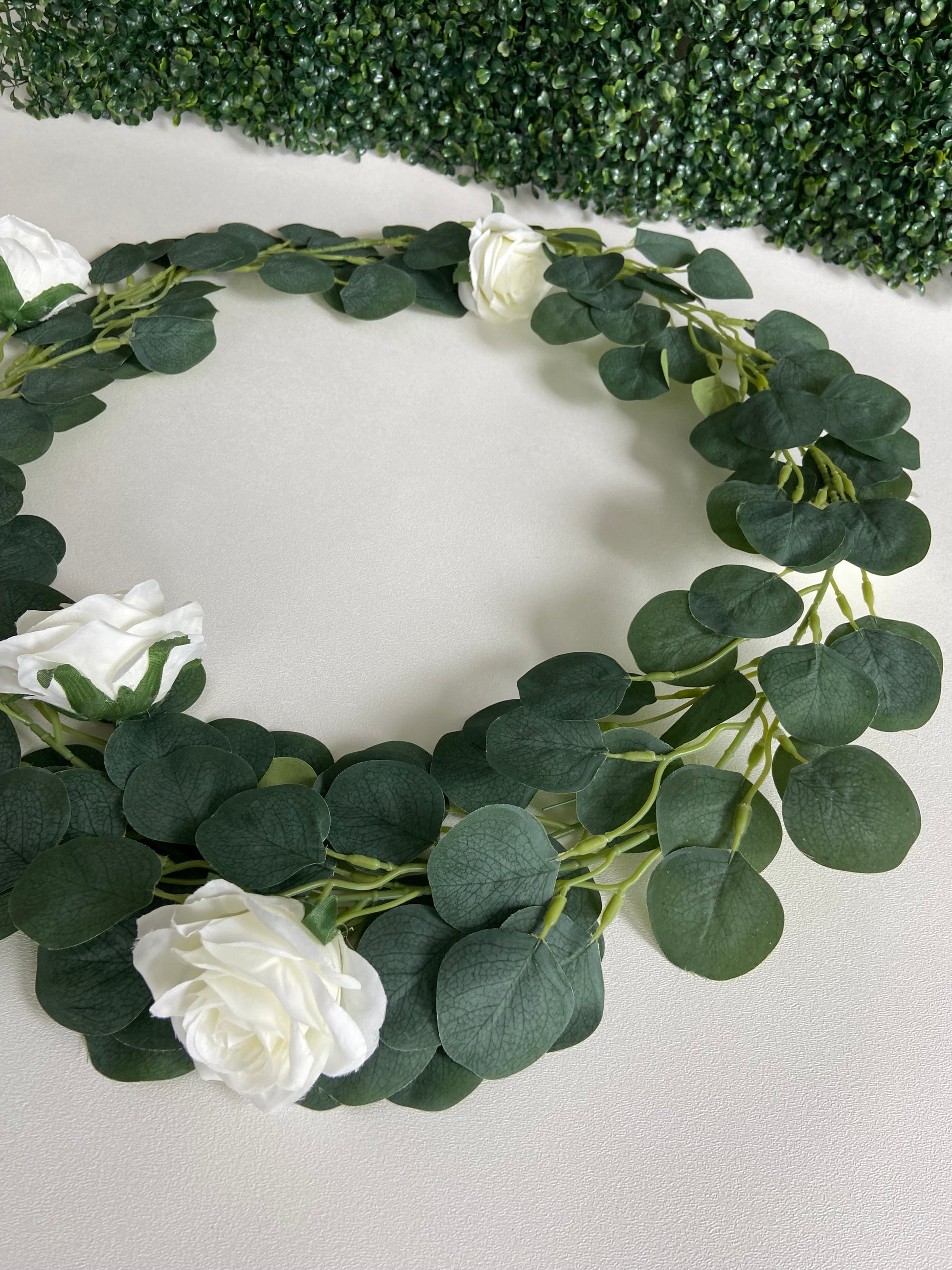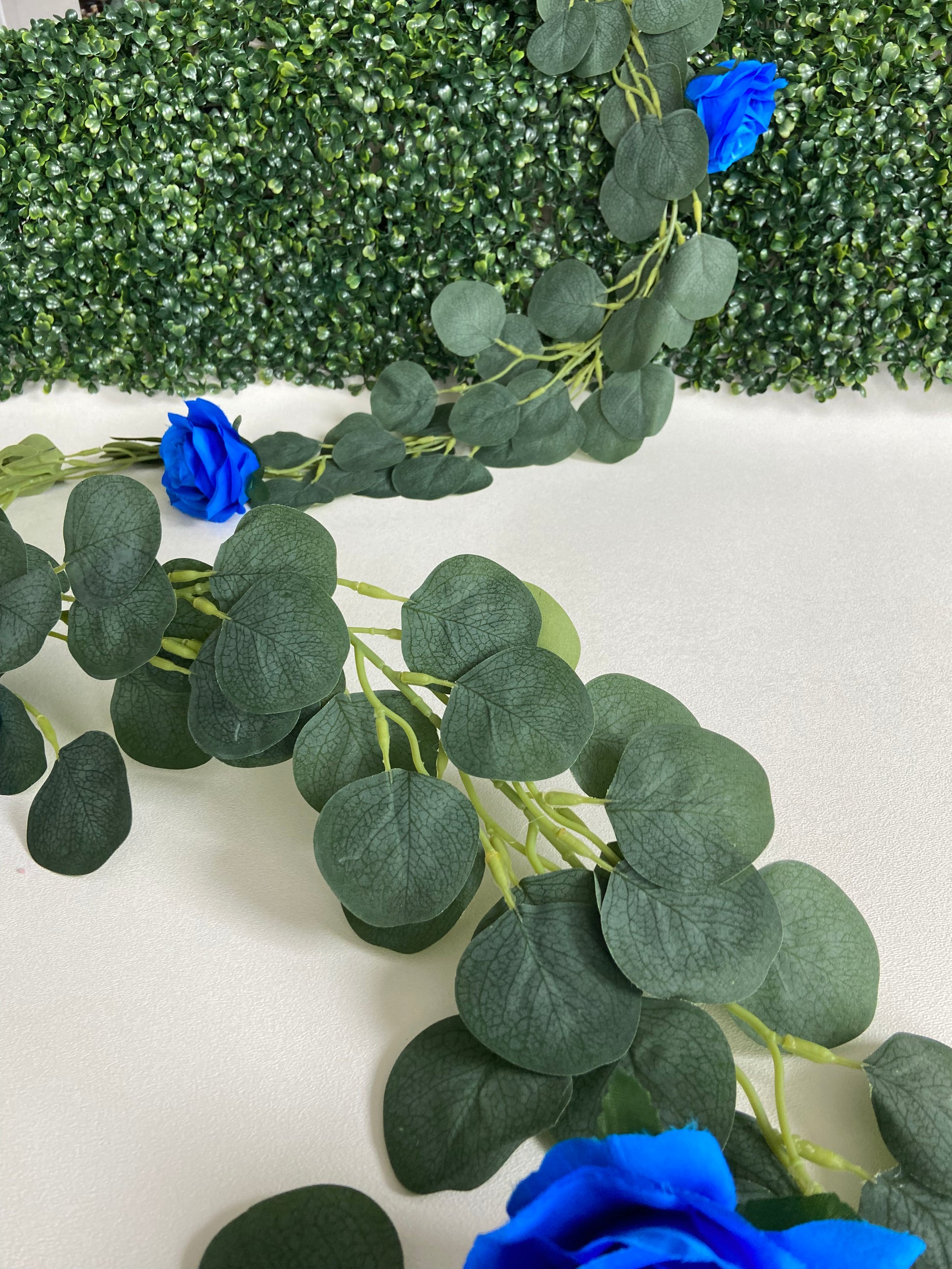Enhance the natural beauty of your event with our lifelike eucalyptus garlands. These artificial vines are meticulously crafted with silk leaves and durable plastic vines, providing a realistic and long-lasting foliage option for your decor needs. Each vine stretches 6.5 ft long, adorned with lush 2.16-inch leaves, adding a touch of greenery to any space. Each silk flower measure 4 inches wide.