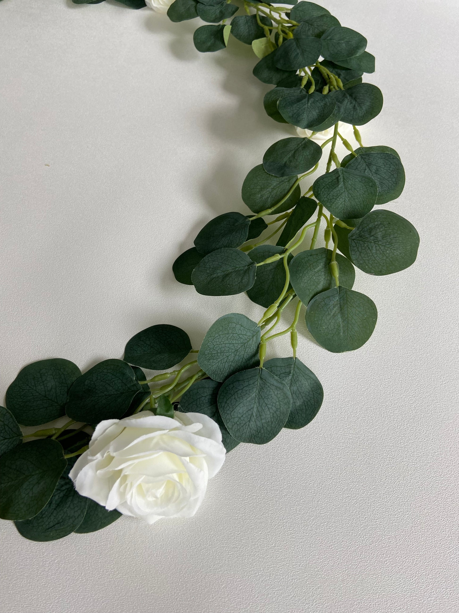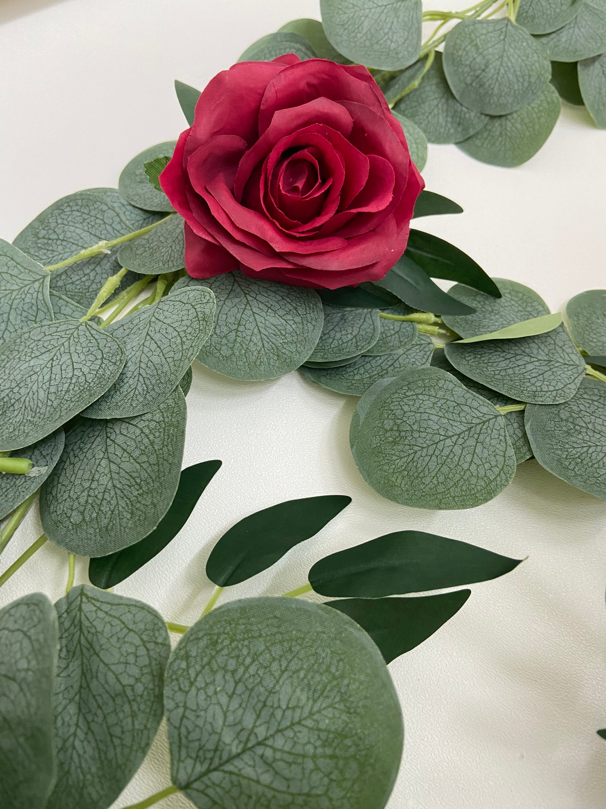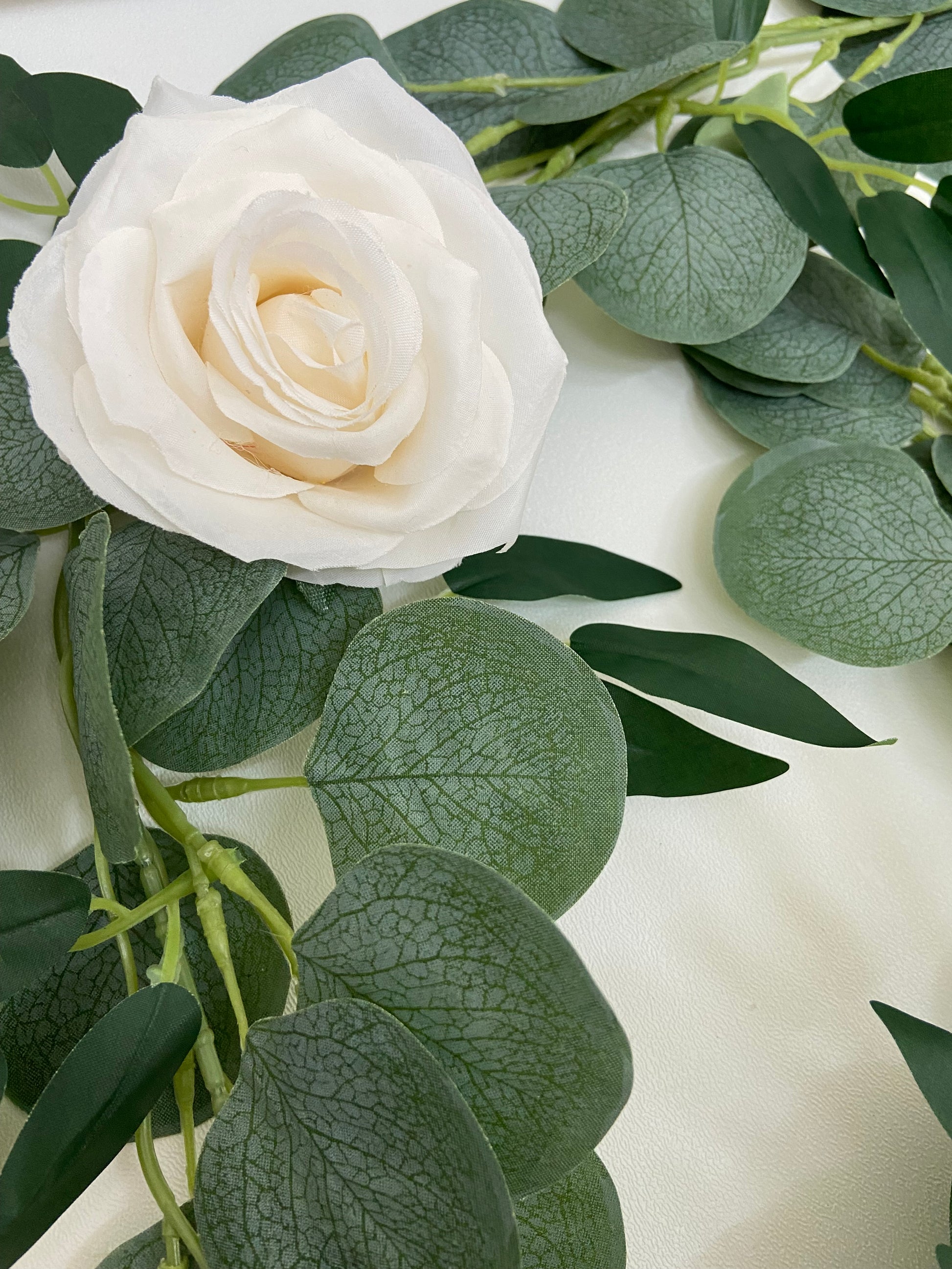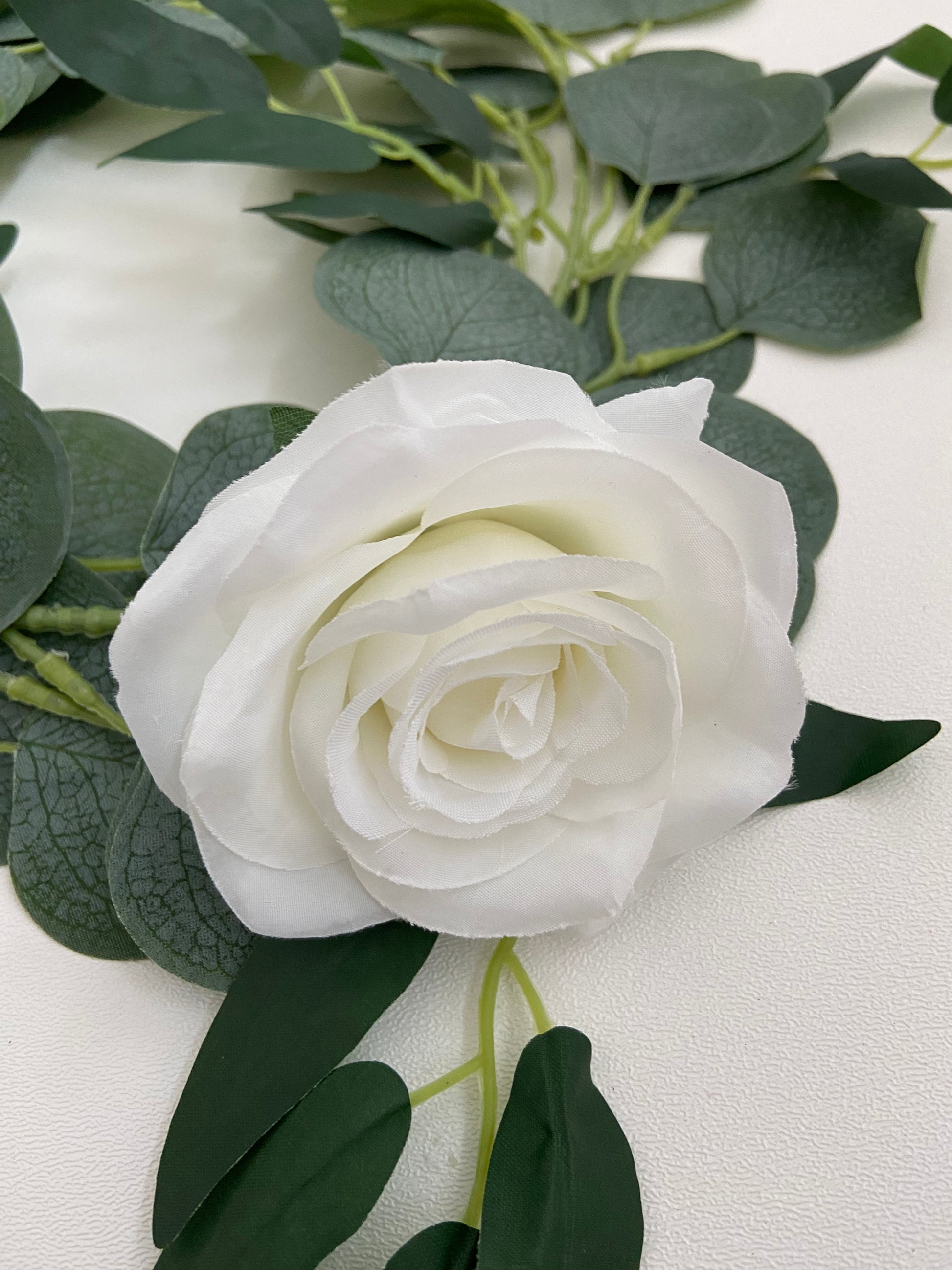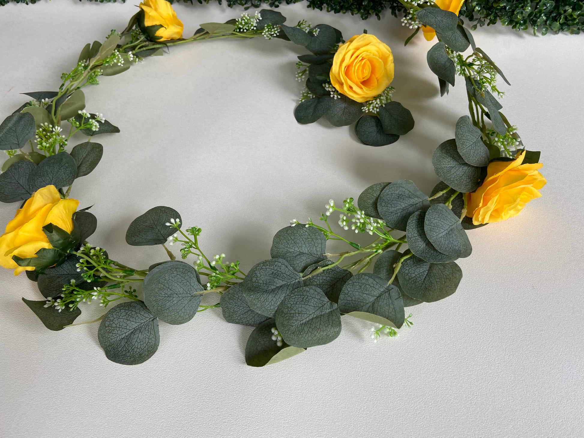 Enhance the natural beauty of your event with our lifelike eucalyptus garlands. These artificial vines are meticulously crafted with silk leaves and durable plastic vines, providing a realistic and long-lasting foliage option for your decor needs. Each vine stretches 6.5 ft long, adorned with lush 2.16-inch leaves, adding a touch of greenery to any space. Each silk flower measure 4 inches wide.