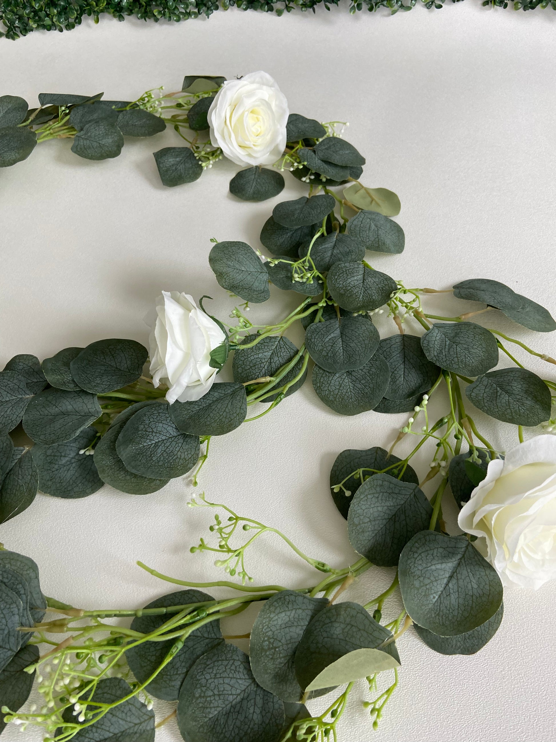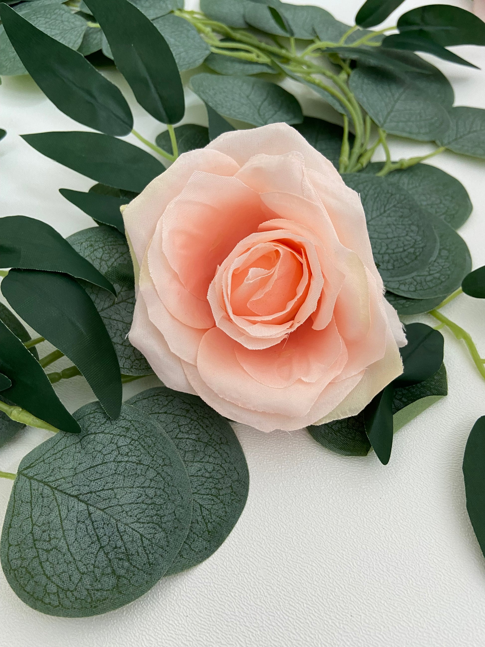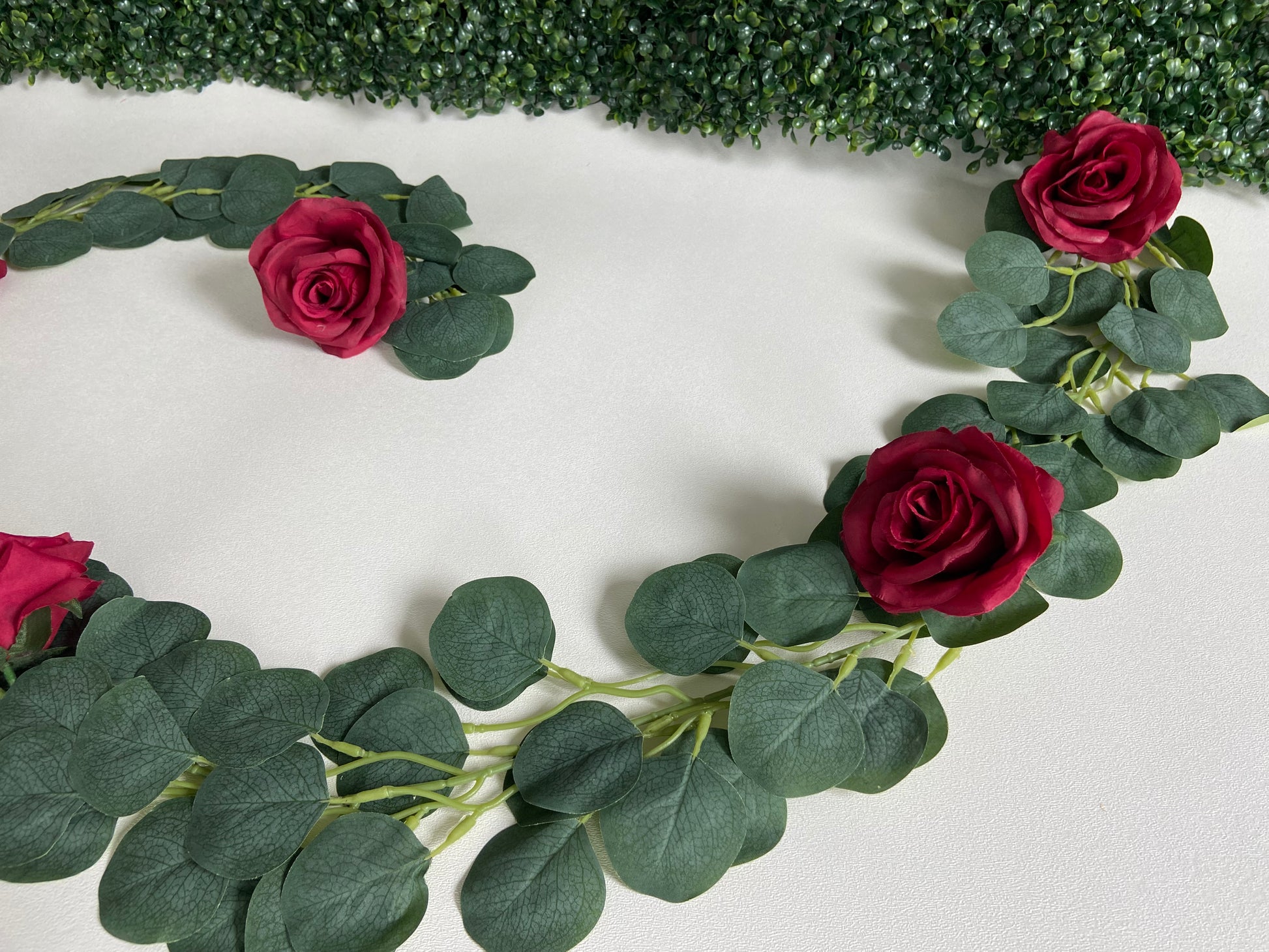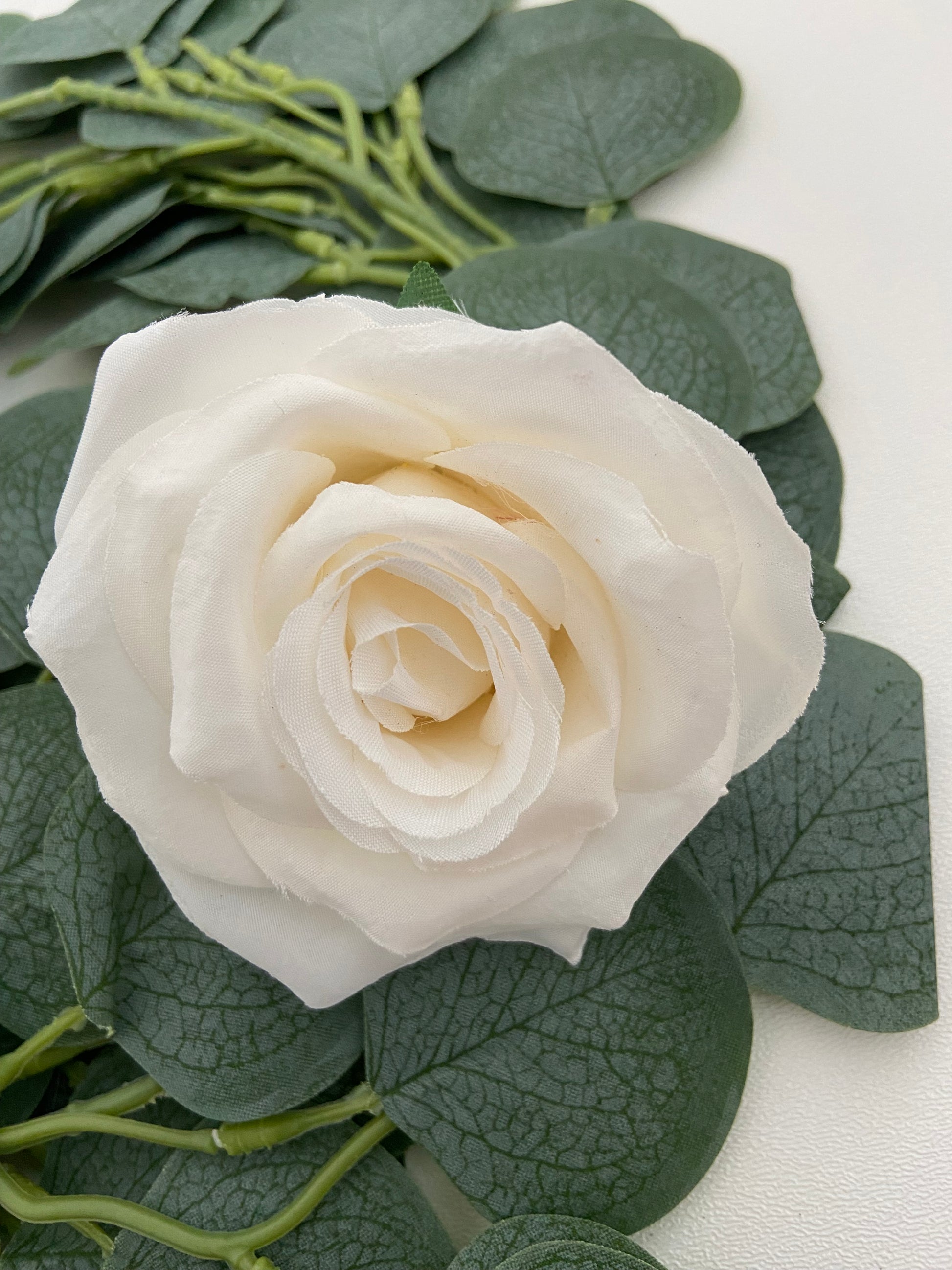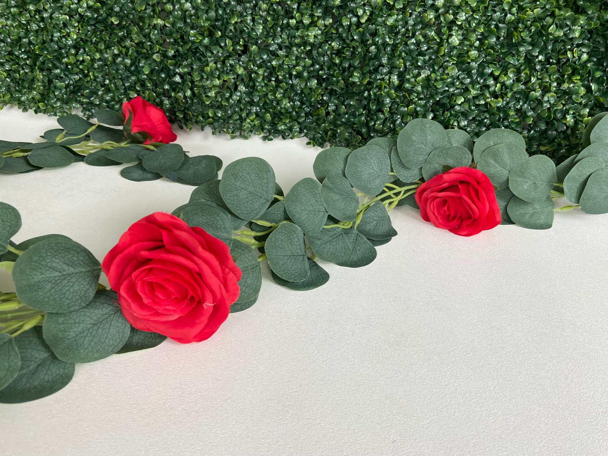 Enhance the natural beauty of your event with our lifelike eucalyptus garlands. These artificial vines are meticulously crafted with silk leaves and durable plastic vines, providing a realistic and long-lasting foliage option for your decor needs. Each vine stretches 6.5 ft long, adorned with lush 2.16-inch leaves, adding a touch of greenery to any space. Each silk flower measure 4 inches wide.