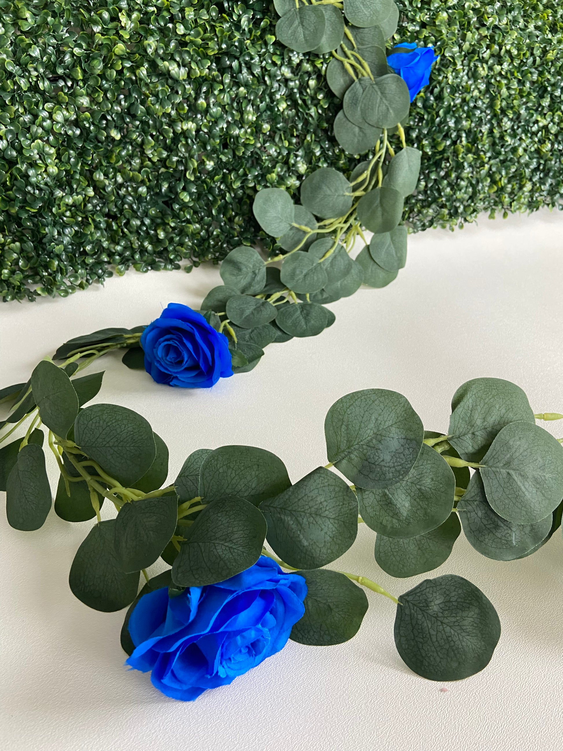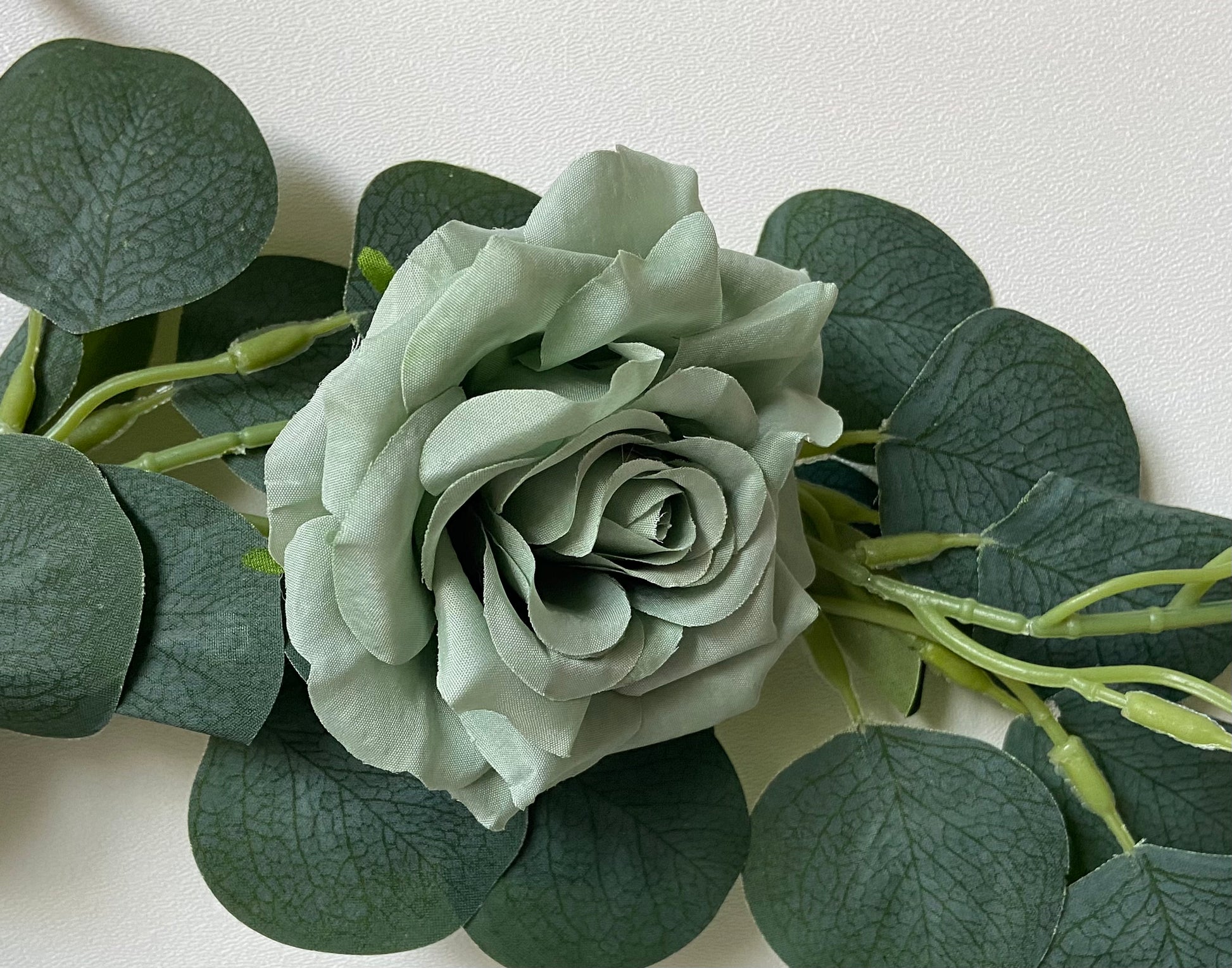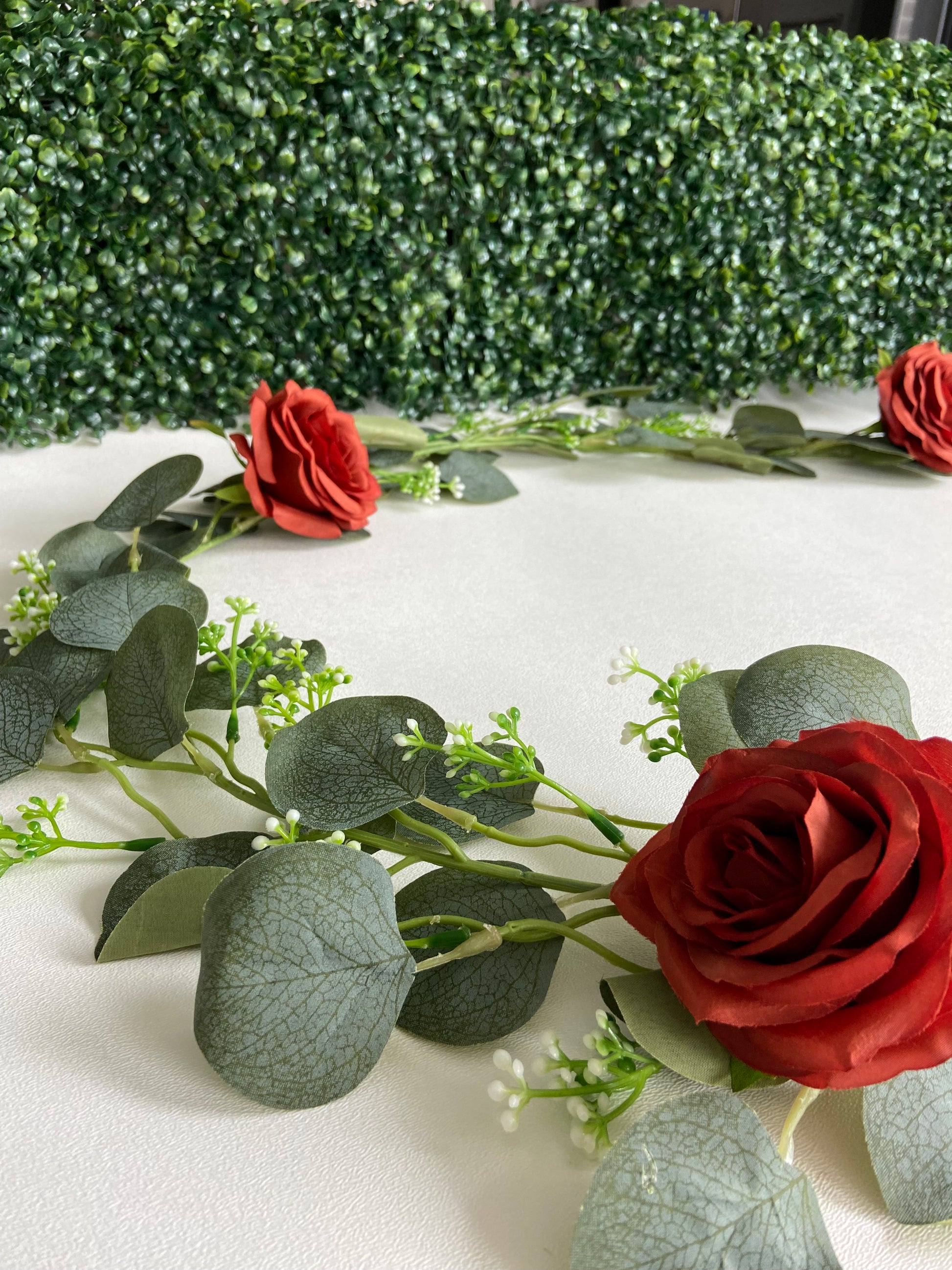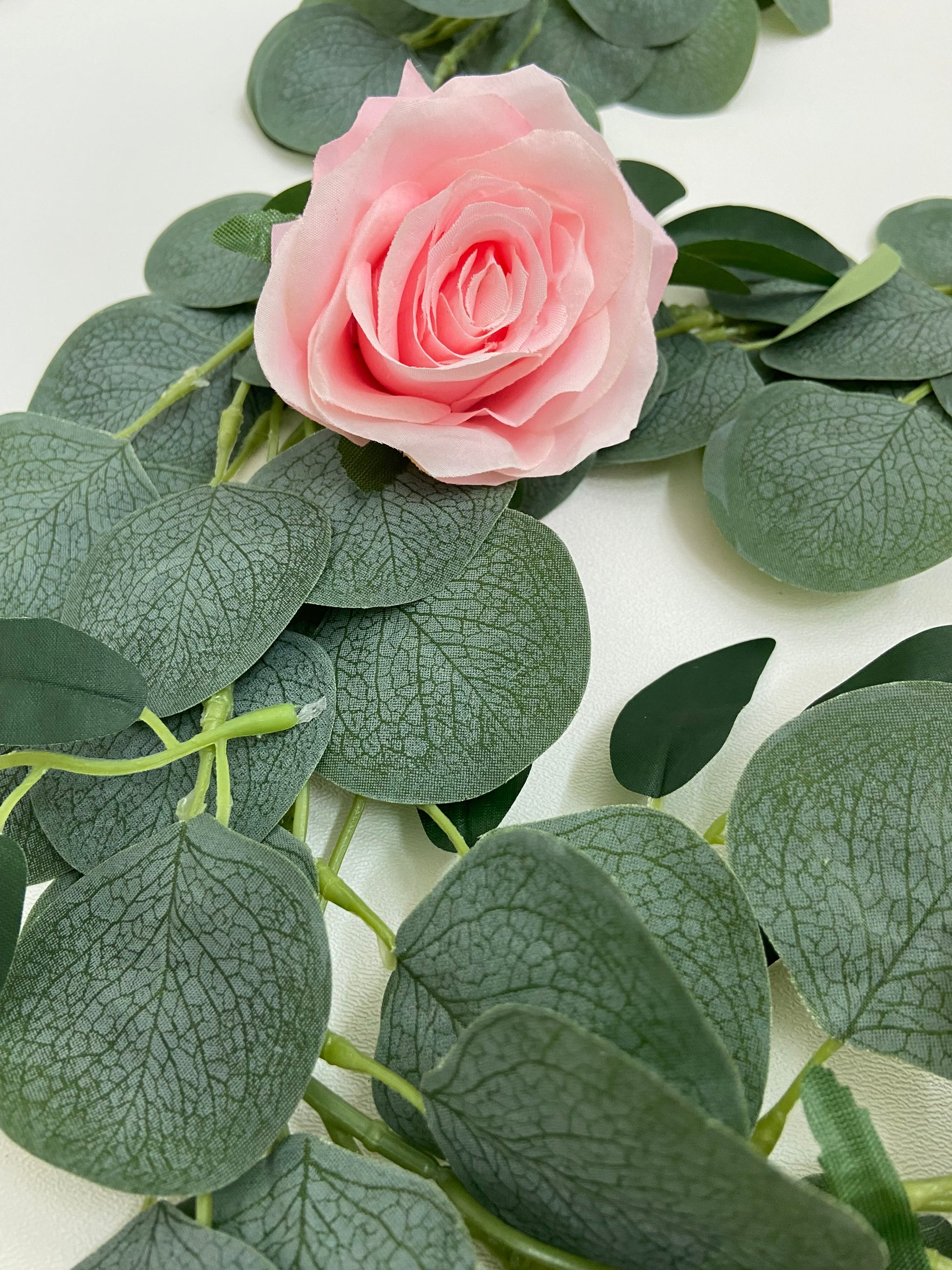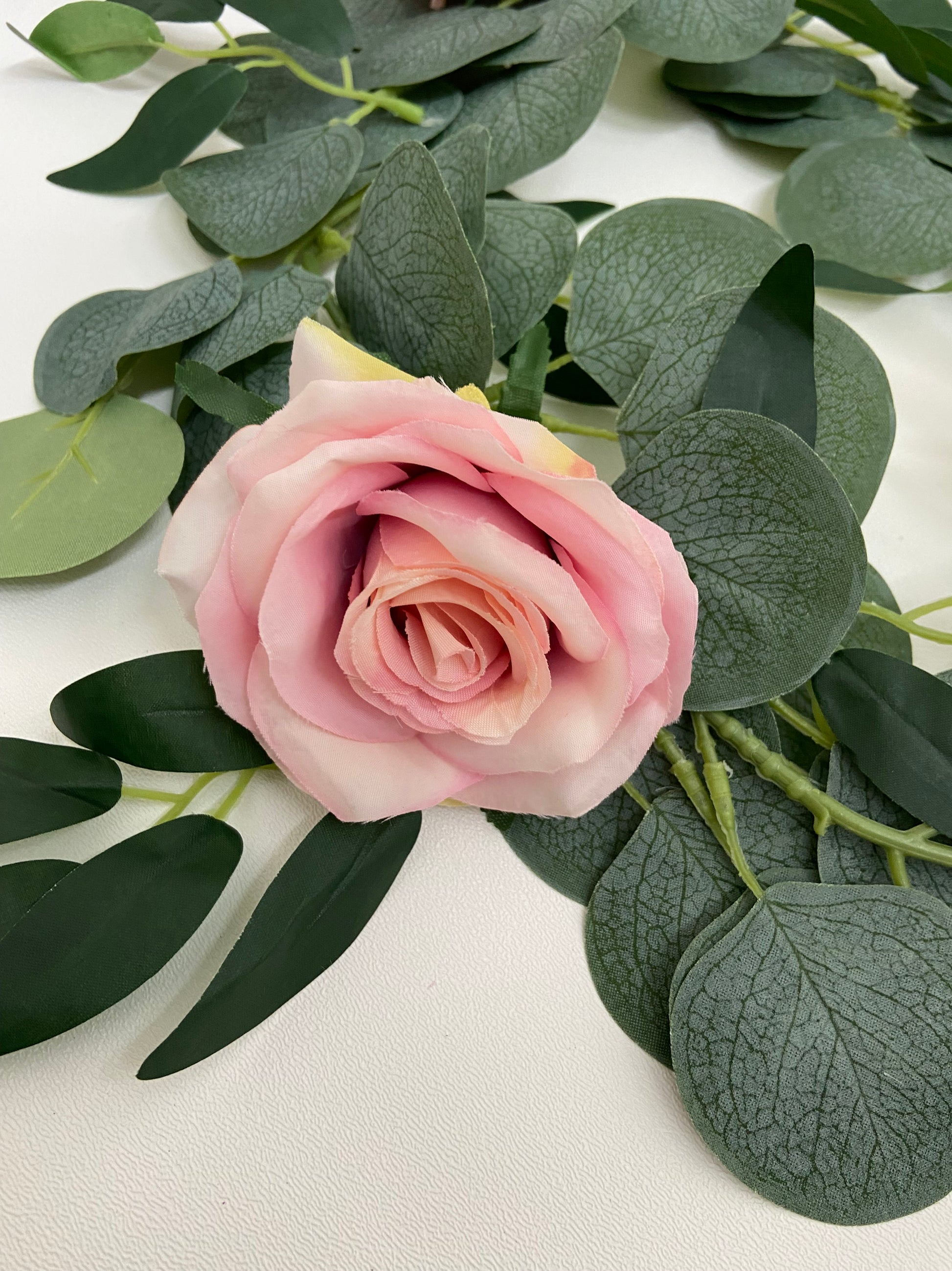 Enhance the natural beauty of your event with our lifelike eucalyptus garlands. These artificial vines are meticulously crafted with silk leaves and durable plastic vines, providing a realistic and long-lasting foliage option for your decor needs. Each vine stretches 6.5 ft long, adorned with lush 2.16-inch leaves, adding a touch of greenery to any space. Each silk flower measure 4 inches wide.