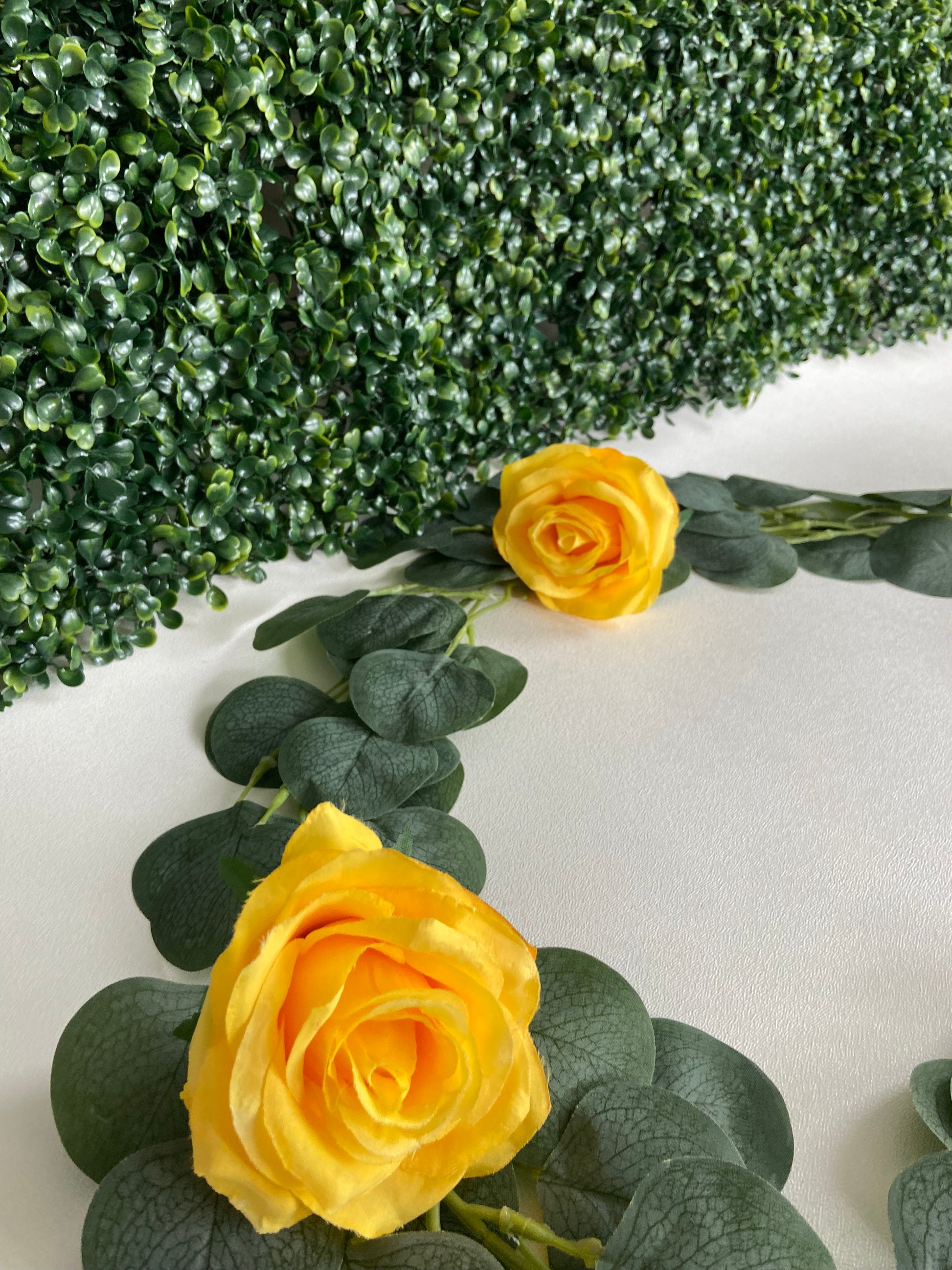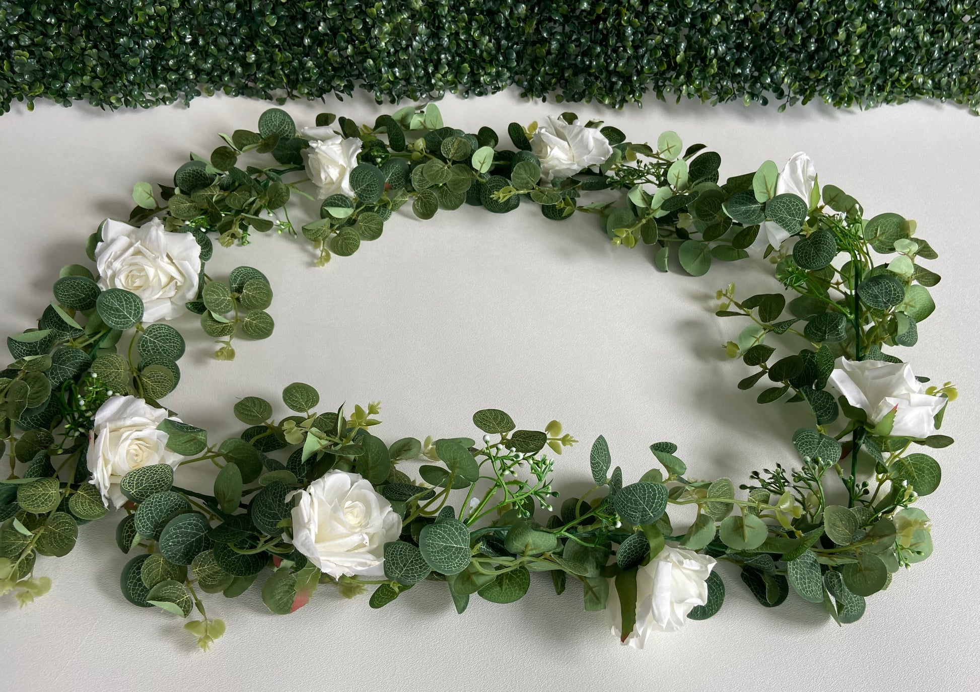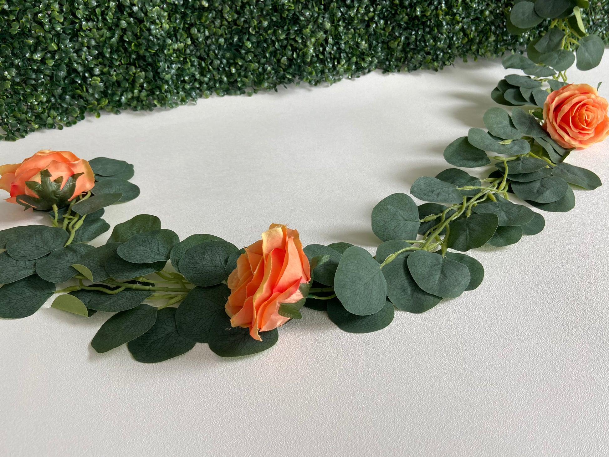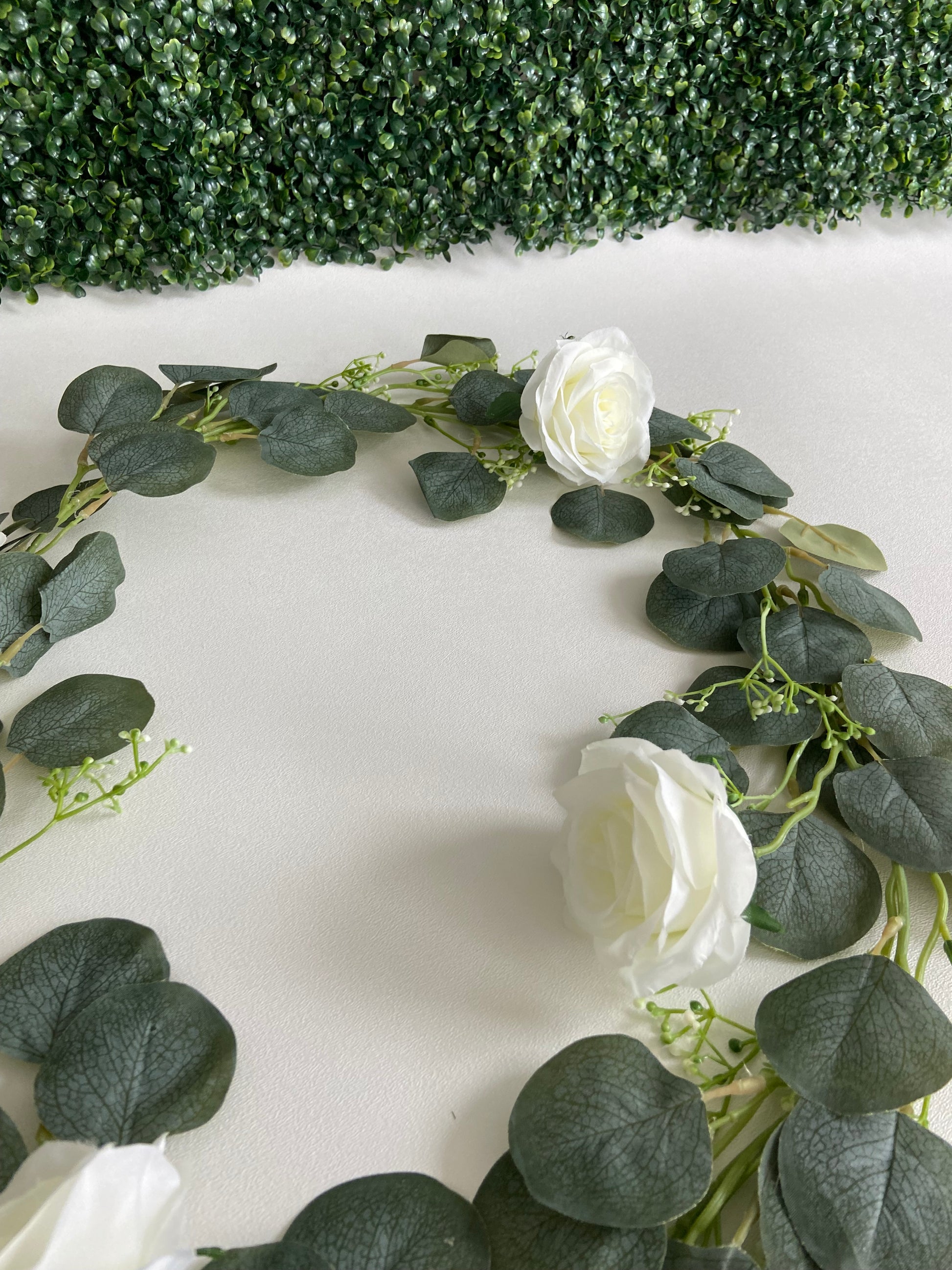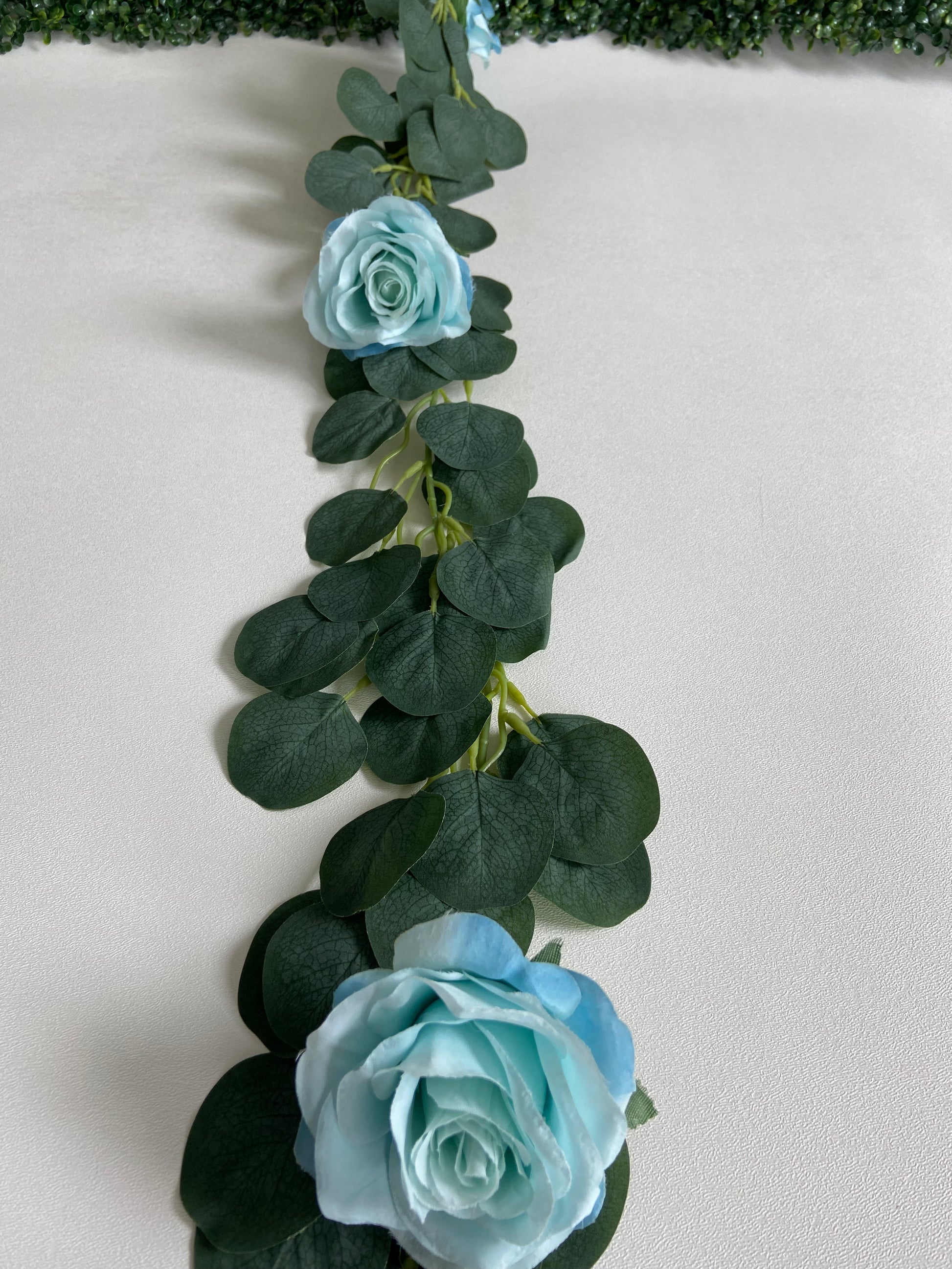 Enhance the natural beauty of your event with our lifelike eucalyptus garlands. These artificial vines are meticulously crafted with silk leaves and durable plastic vines, providing a realistic and long-lasting foliage option for your decor needs. Each vine stretches 6.5 ft long, adorned with lush 2.16-inch leaves, adding a touch of greenery to any space. Each silk flower measure 4 inches wide.