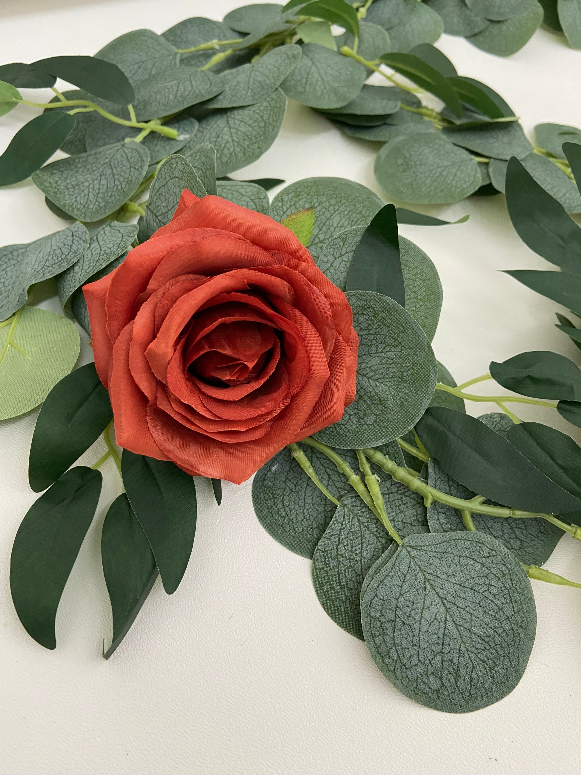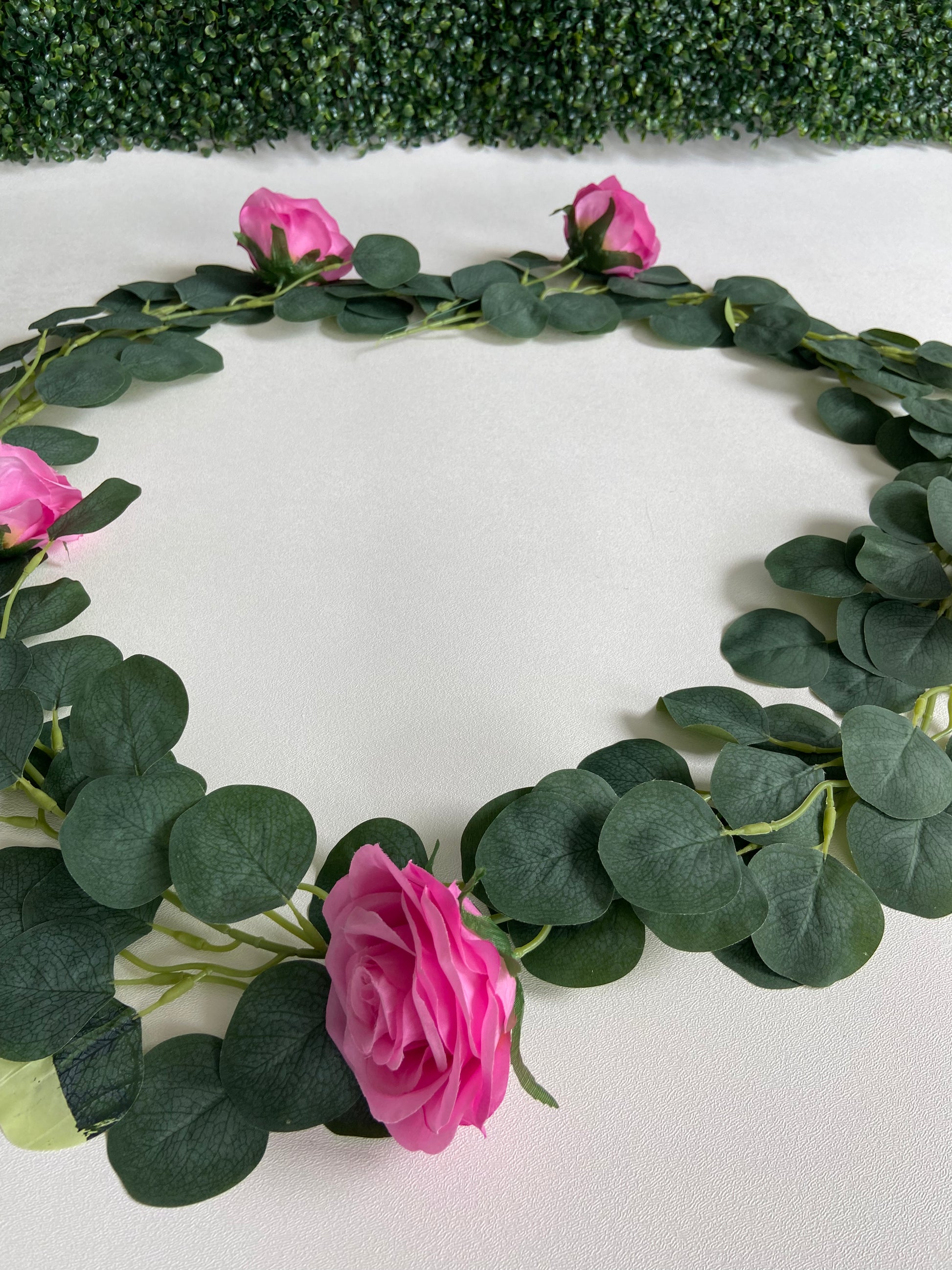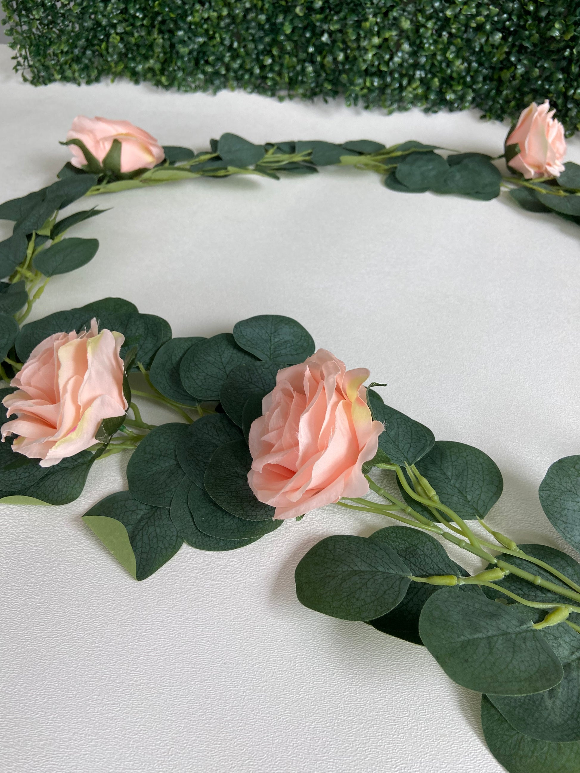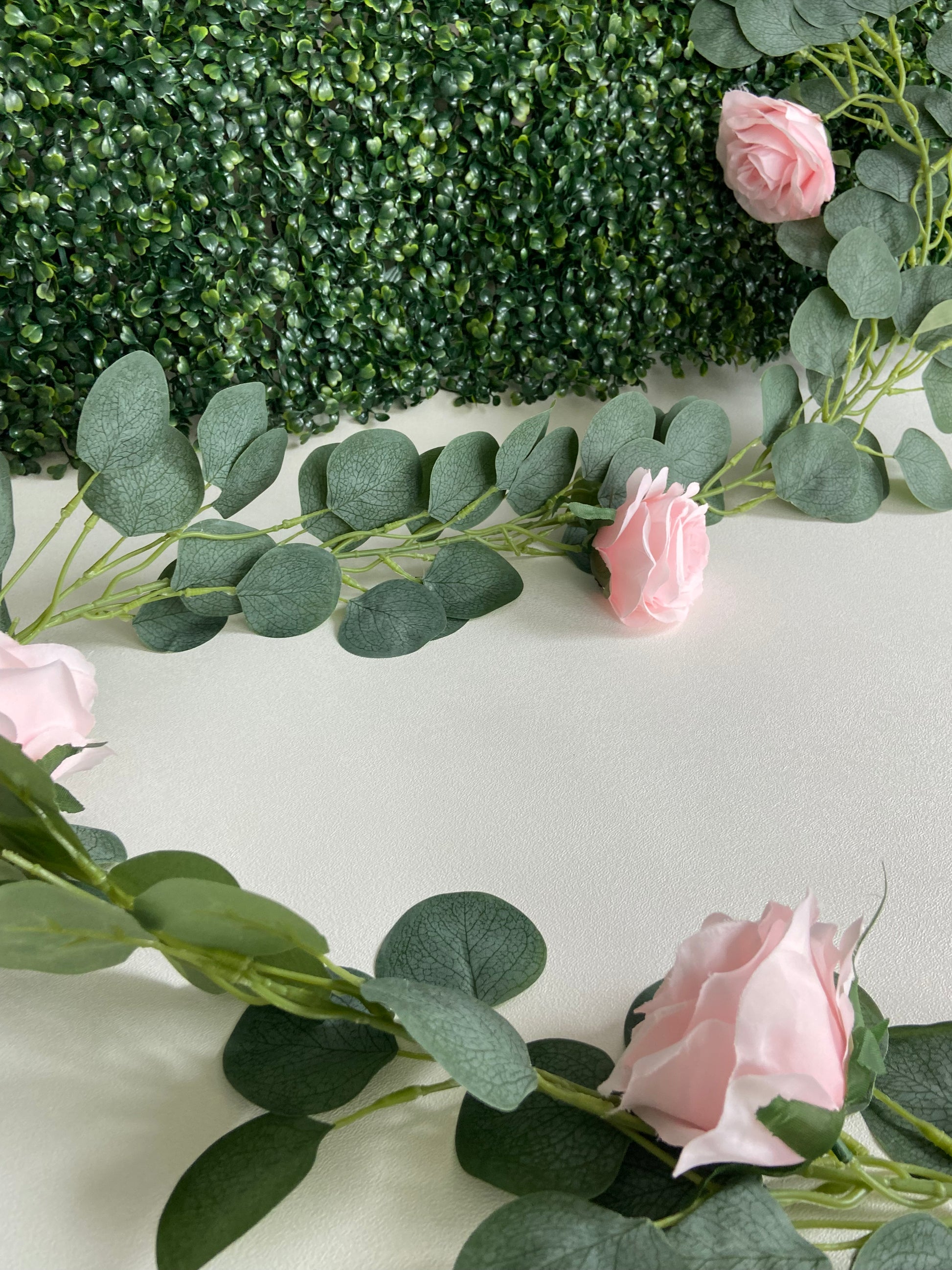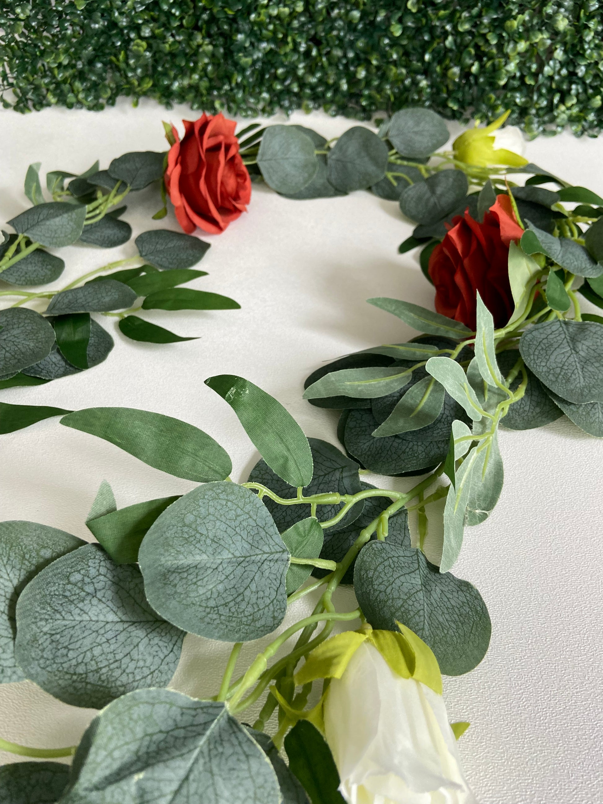 Enhance the natural beauty of your event with our lifelike eucalyptus garlands. These artificial vines are meticulously crafted with silk leaves and durable plastic vines, providing a realistic and long-lasting foliage option for your decor needs. Each vine stretches 6.5 ft long, adorned with lush 2.16-inch leaves, adding a touch of greenery to any space. Each silk flower measure 4 inches wide.