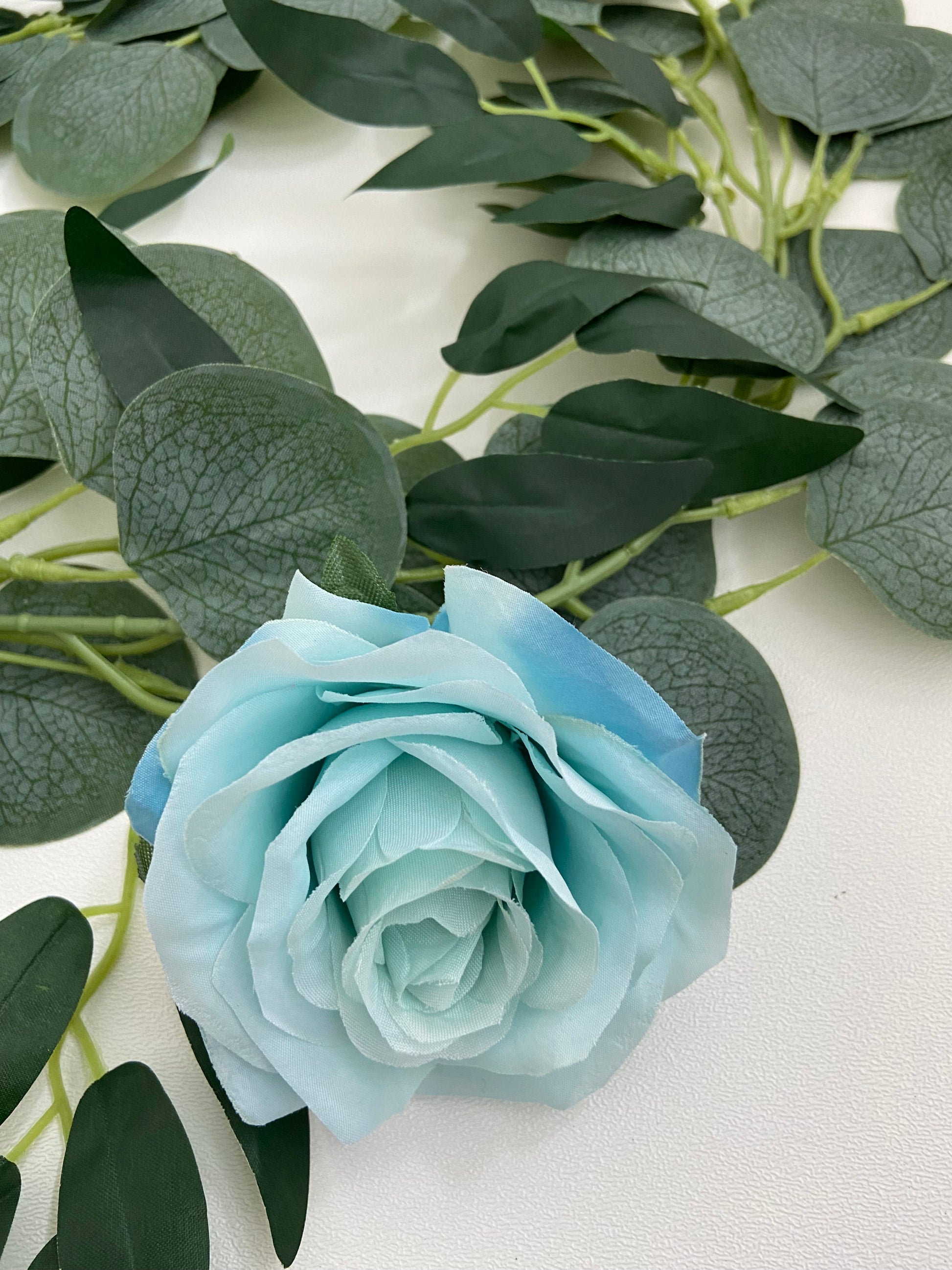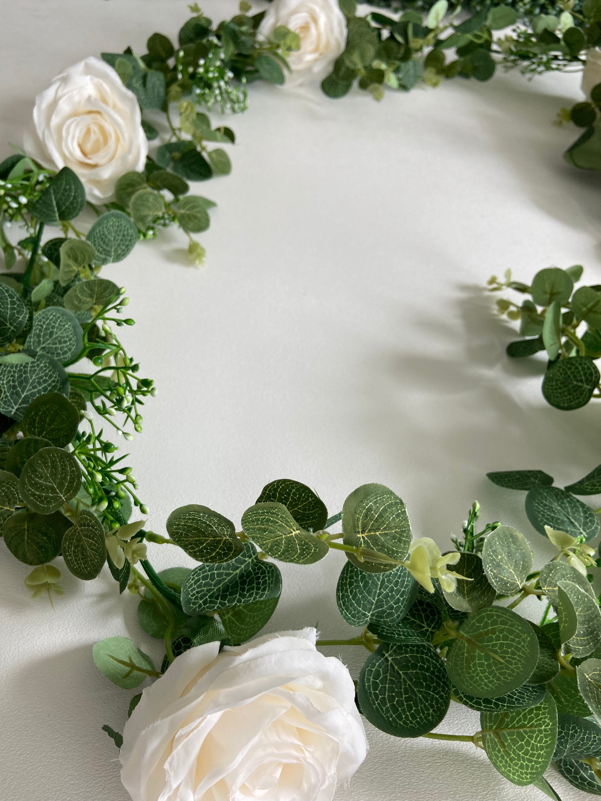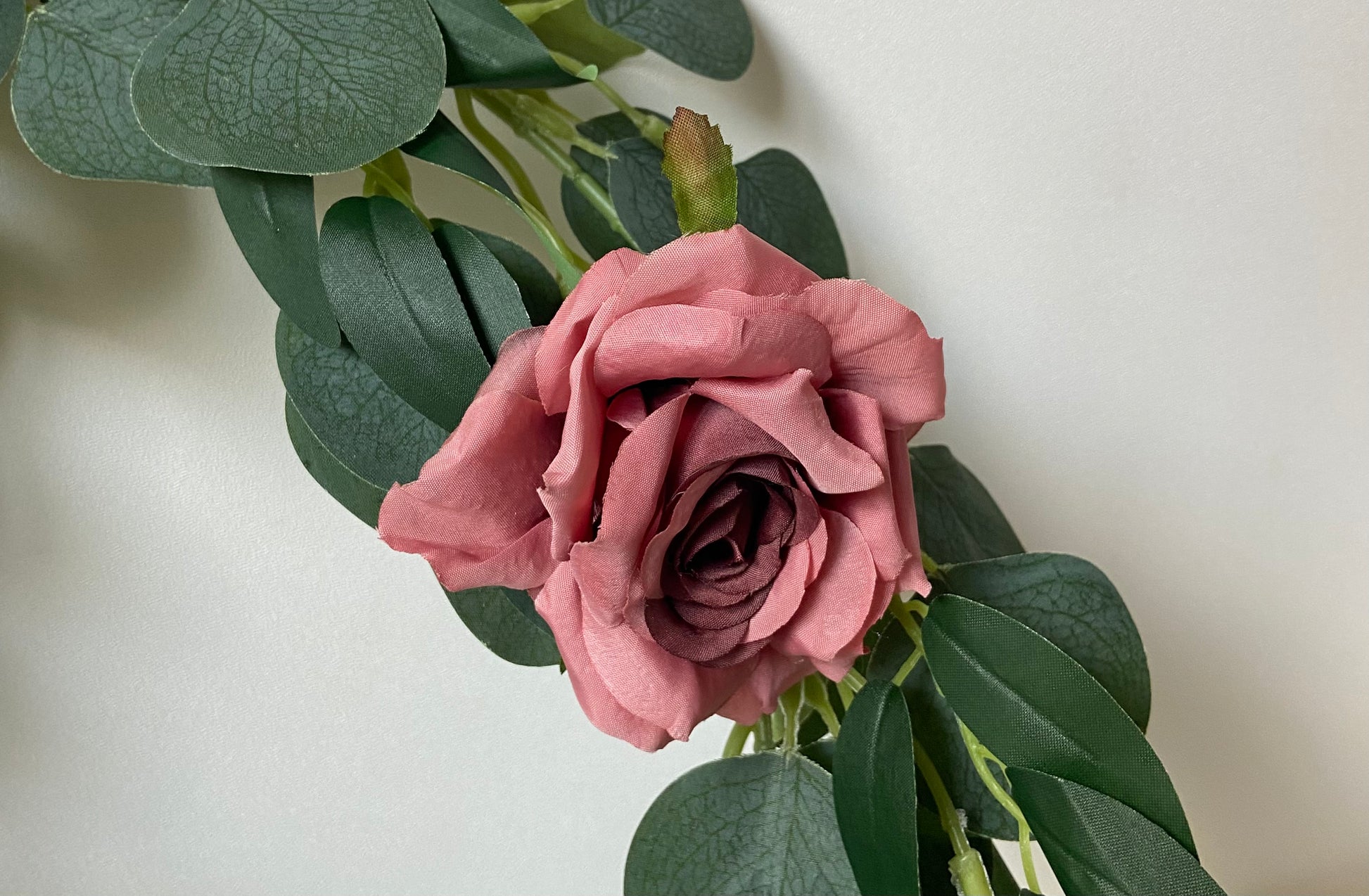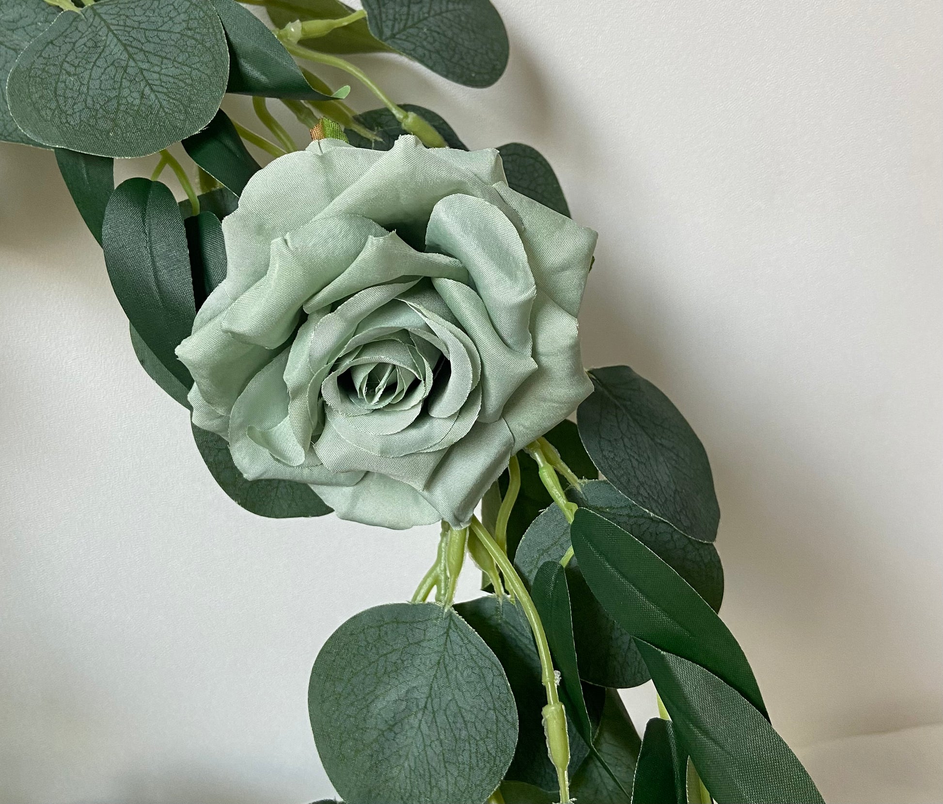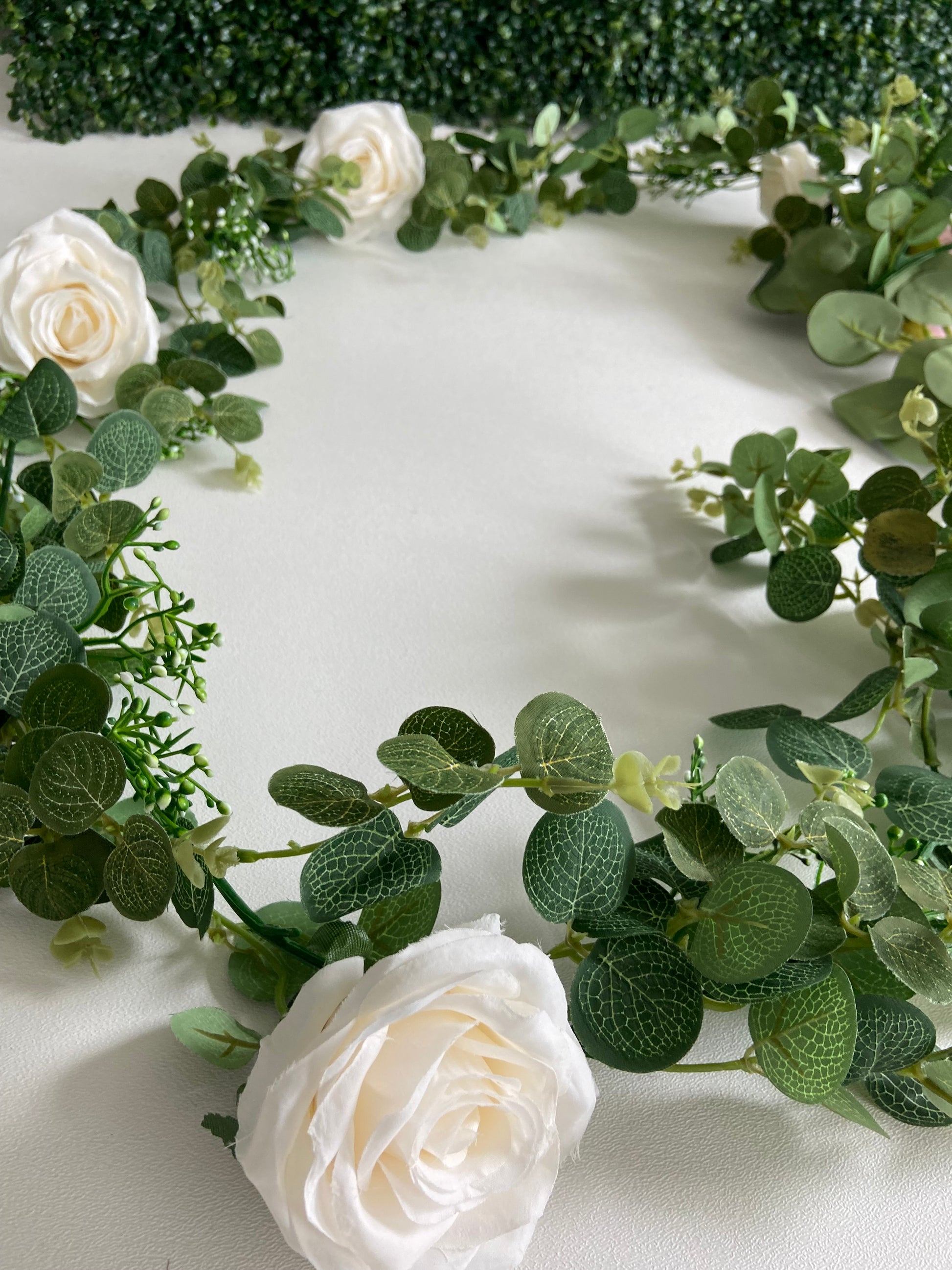 Enhance the natural beauty of your event with our lifelike eucalyptus garlands. These artificial vines are meticulously crafted with silk leaves and durable plastic vines, providing a realistic and long-lasting foliage option for your decor needs. Each vine stretches 6.5 ft long, adorned with lush 2.16-inch leaves, adding a touch of greenery to any space. Each silk flower measure 4 inches wide.