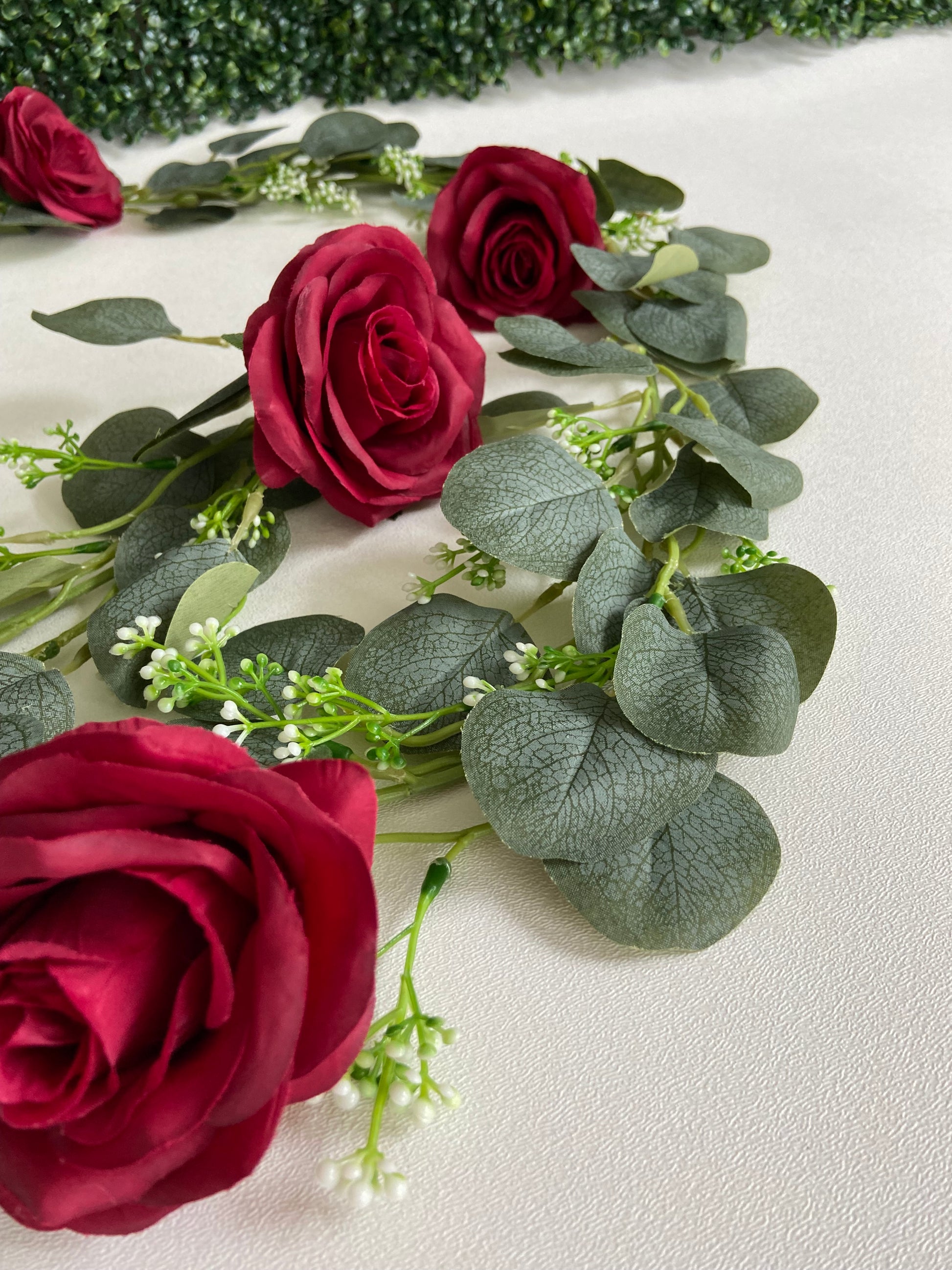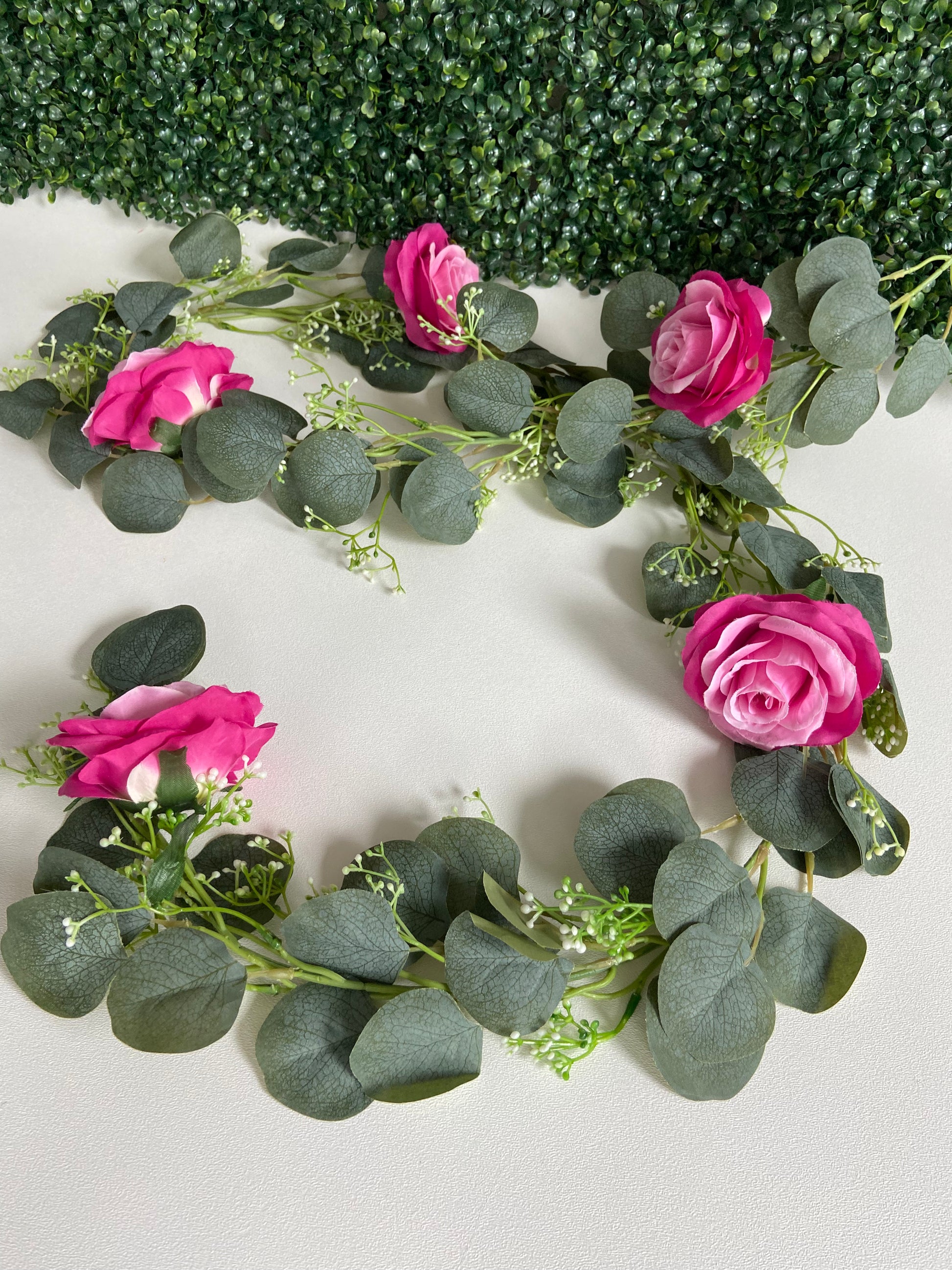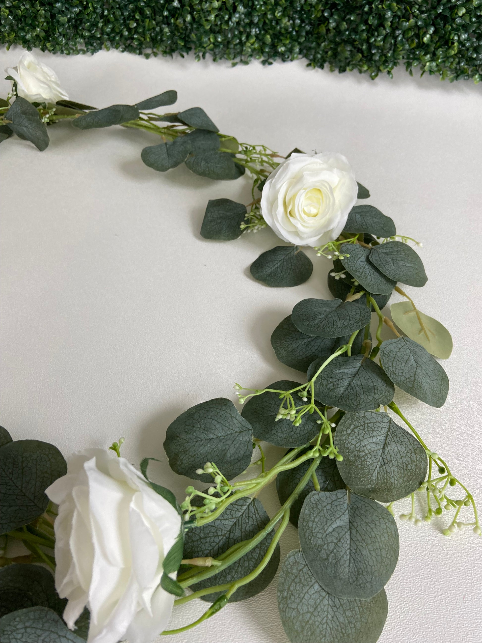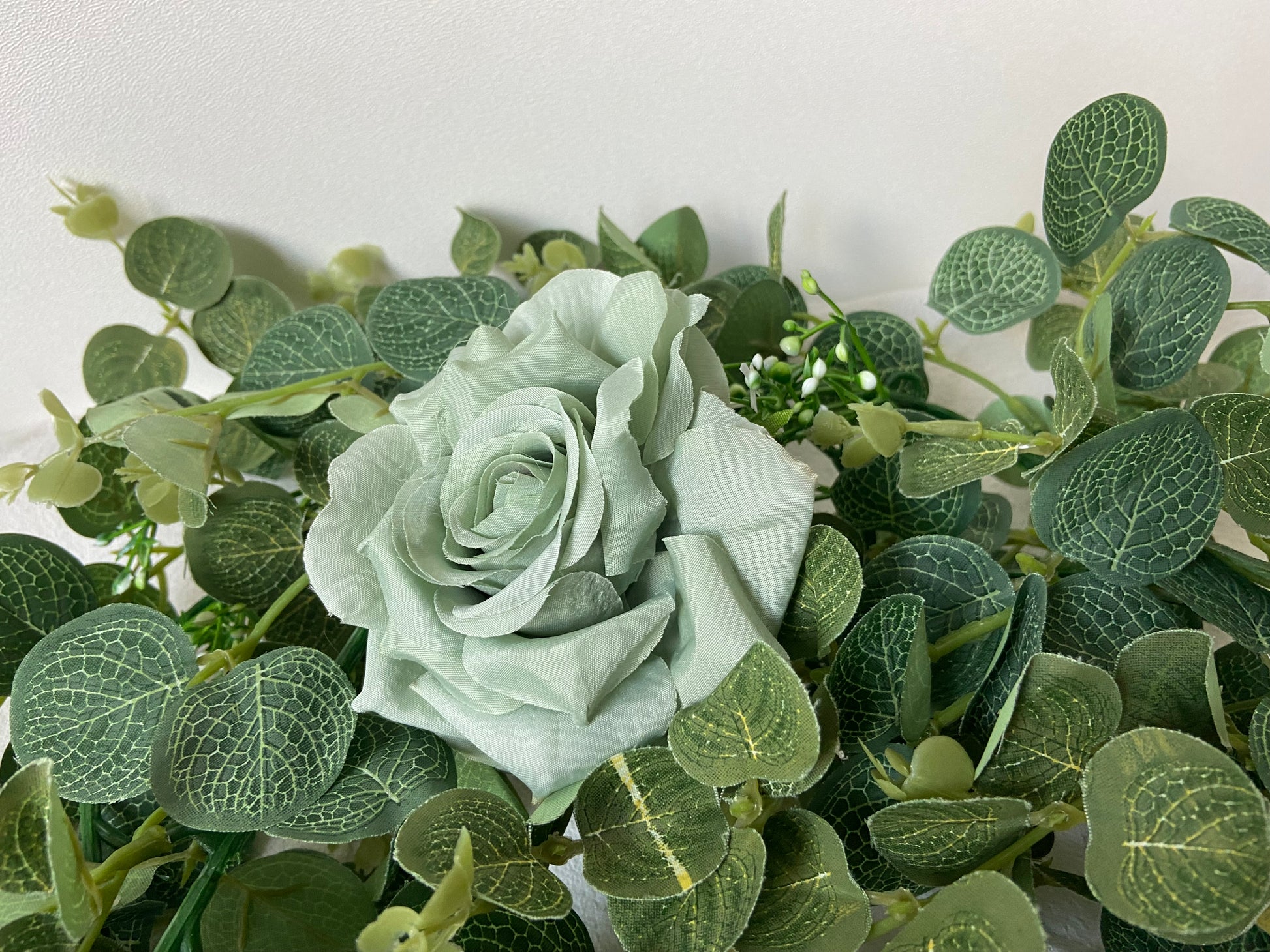 Enhance the natural beauty of your event with our lifelike eucalyptus garlands. These artificial vines are meticulously crafted with silk leaves and durable plastic vines, providing a realistic and long-lasting foliage option for your decor needs. Each vine stretches 6.5 ft long, adorned with lush 2.16-inch leaves, adding a touch of greenery to any space. Each silk flower measure 4 inches wide.