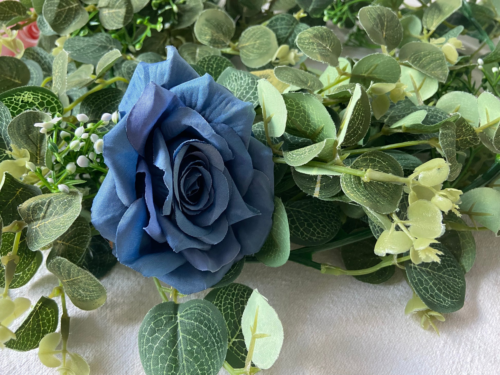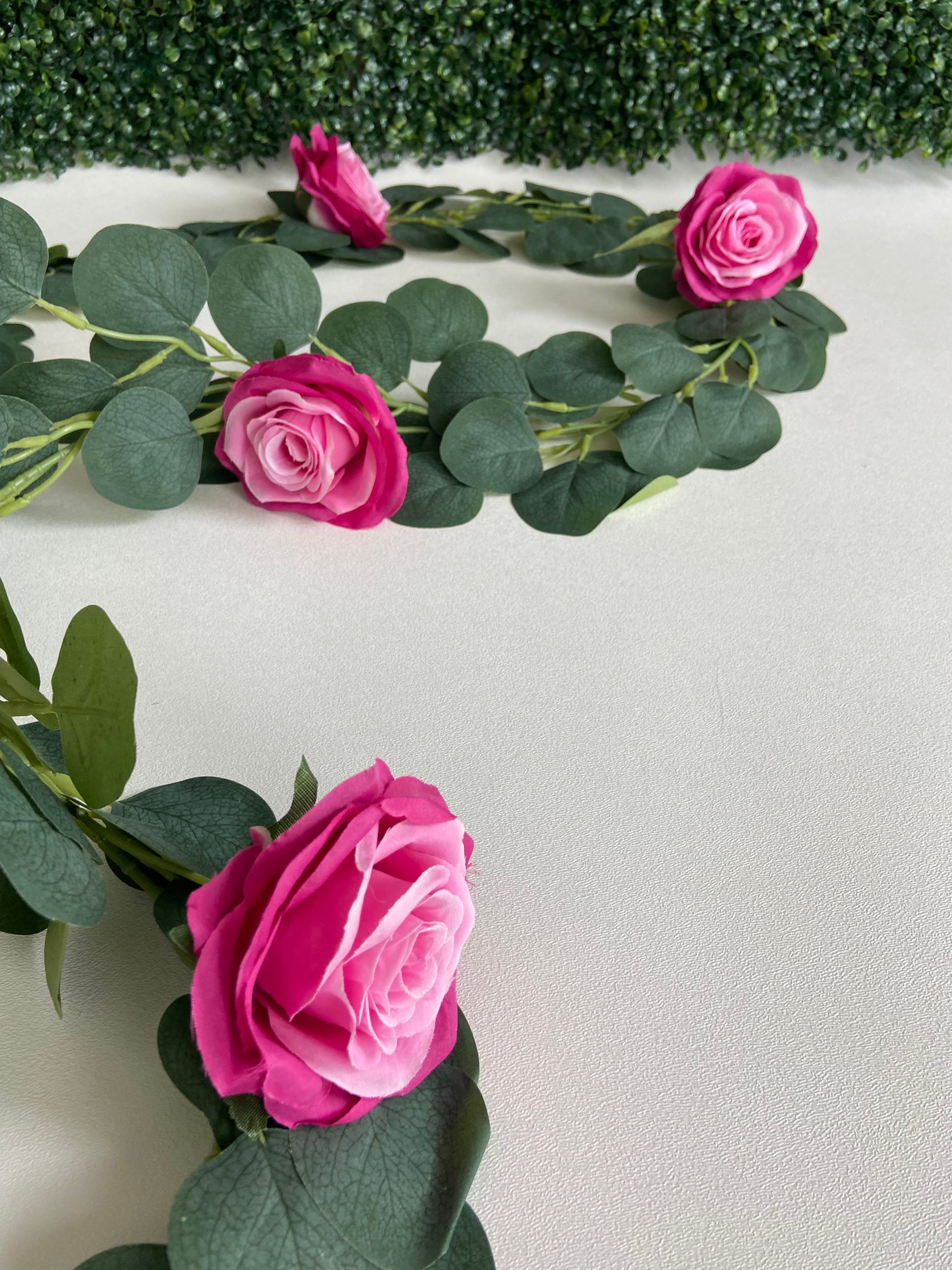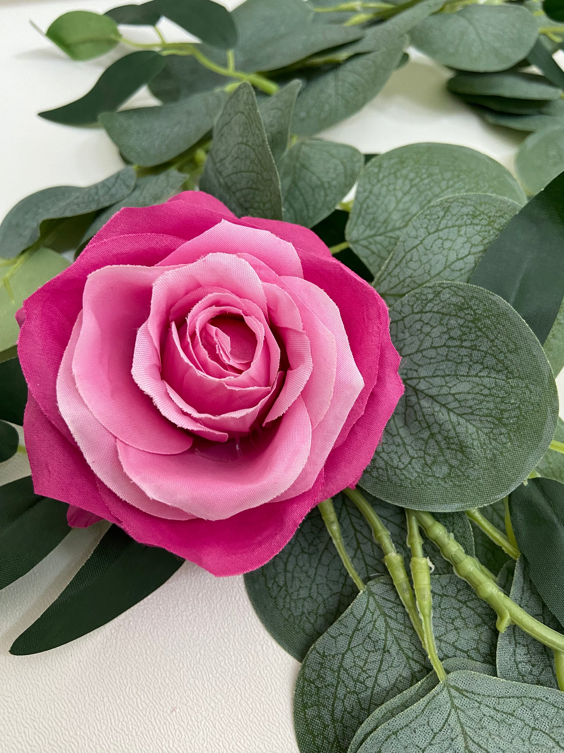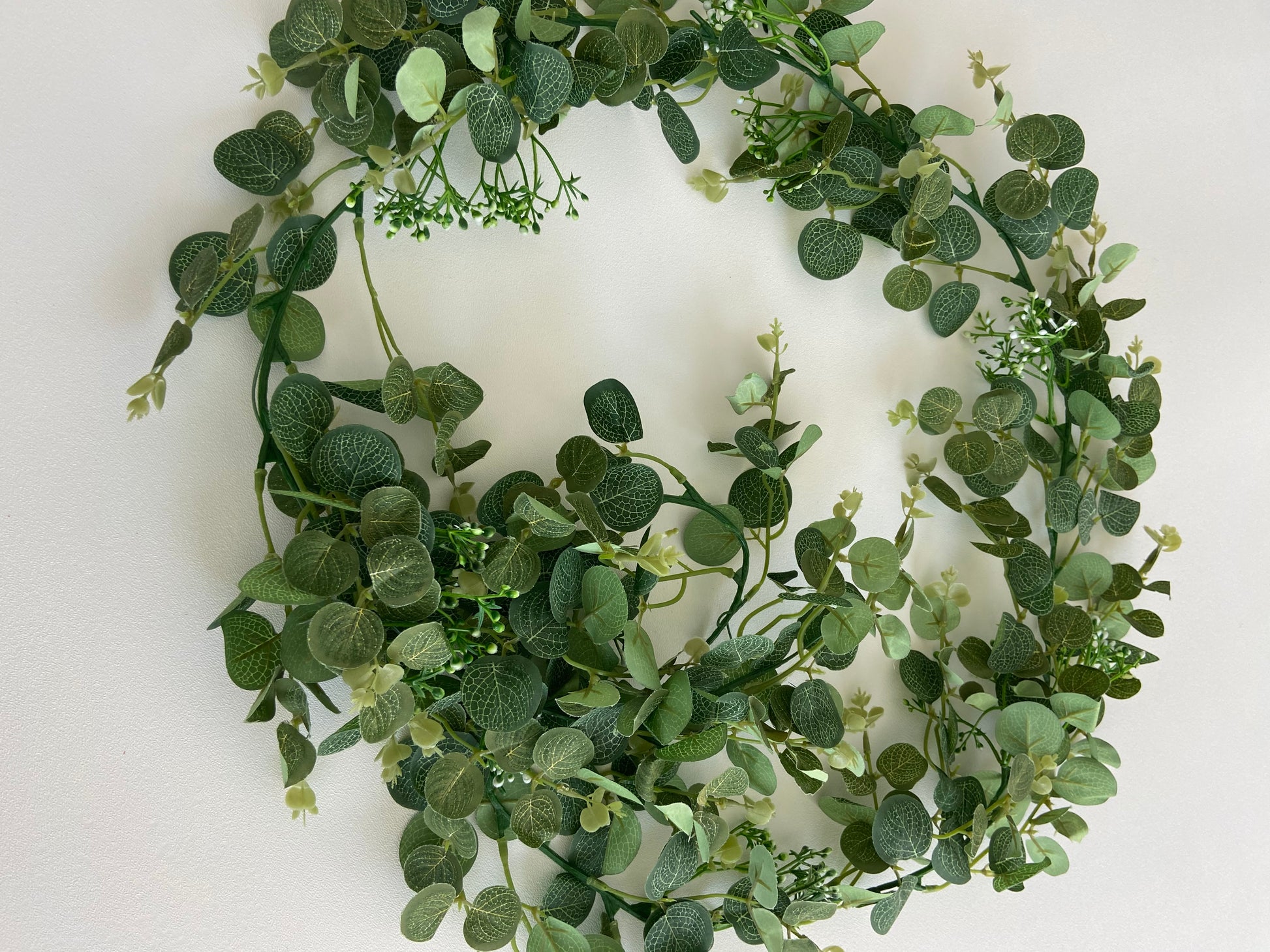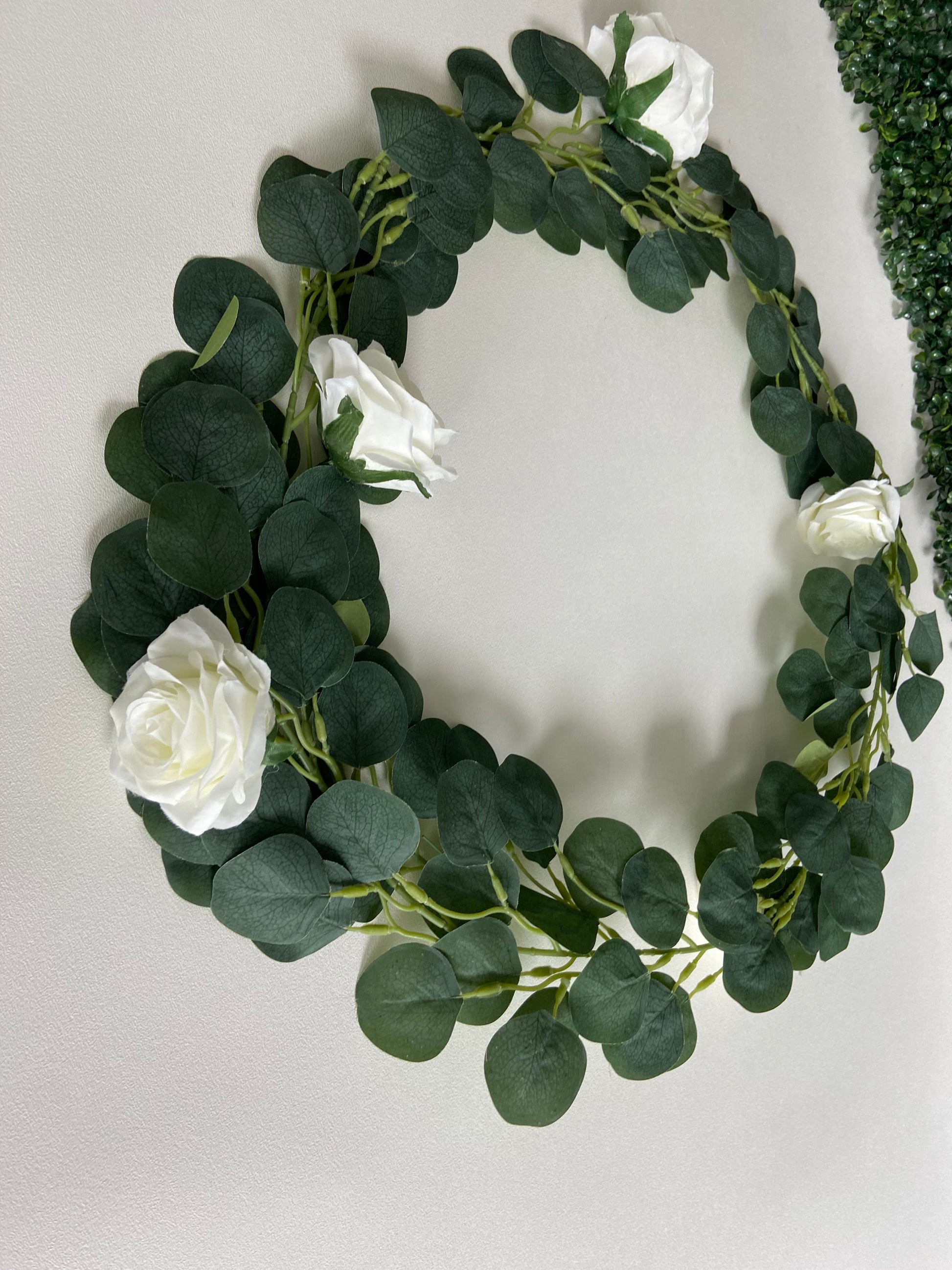 Enhance the natural beauty of your event with our lifelike eucalyptus garlands. These artificial vines are meticulously crafted with silk leaves and durable plastic vines, providing a realistic and long-lasting foliage option for your decor needs. Each vine stretches 6.5 ft long, adorned with lush 2.16-inch leaves, adding a touch of greenery to any space. Each silk flower measure 4 inches wide.