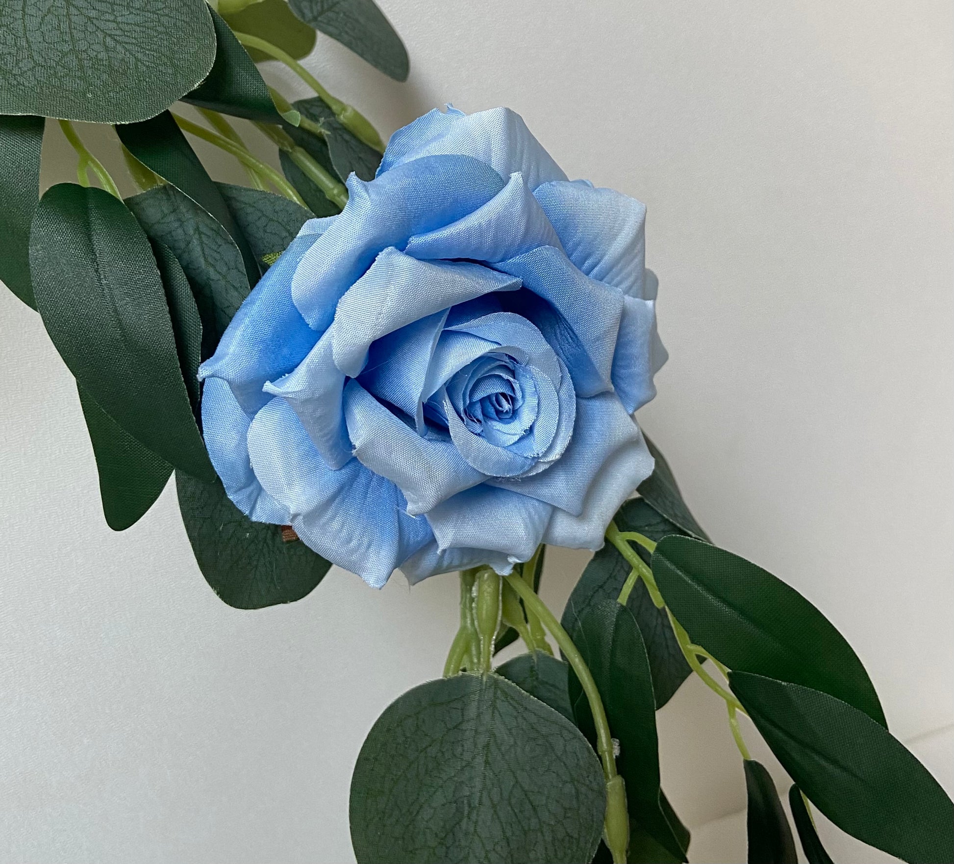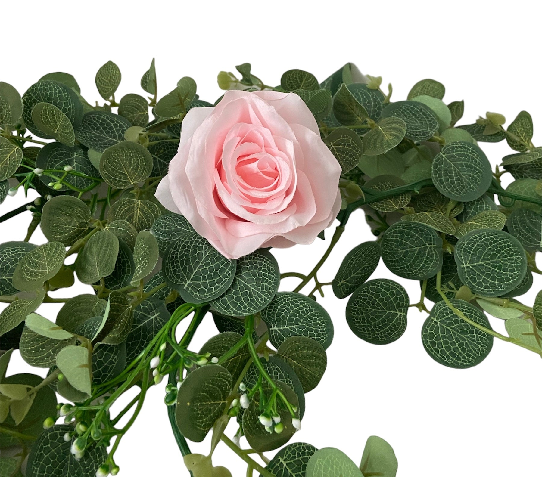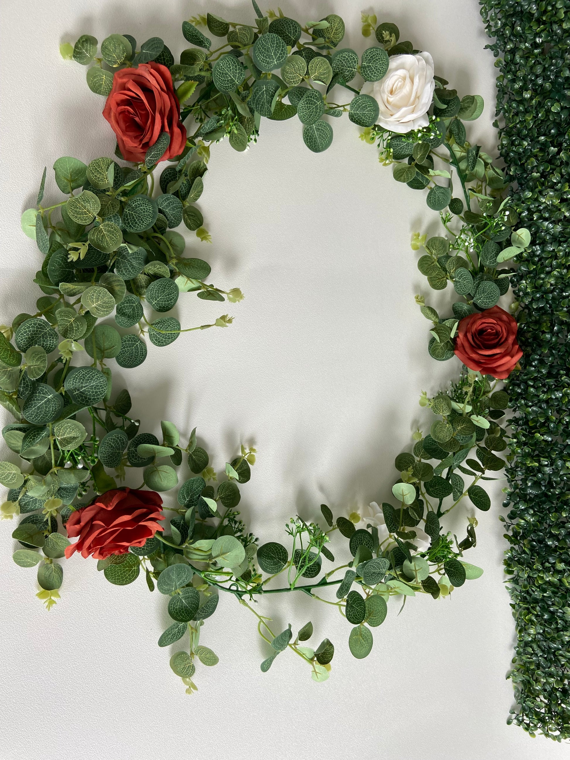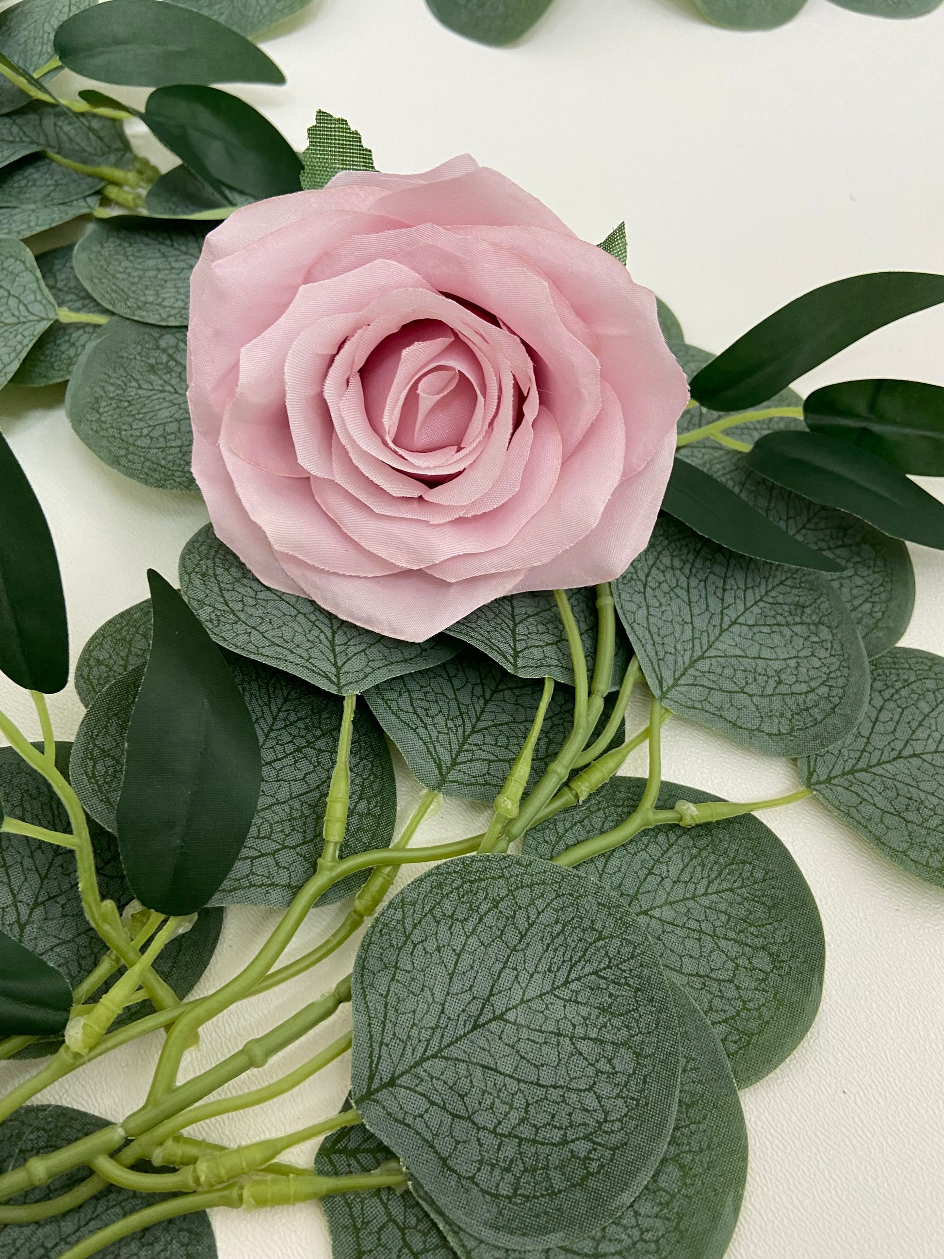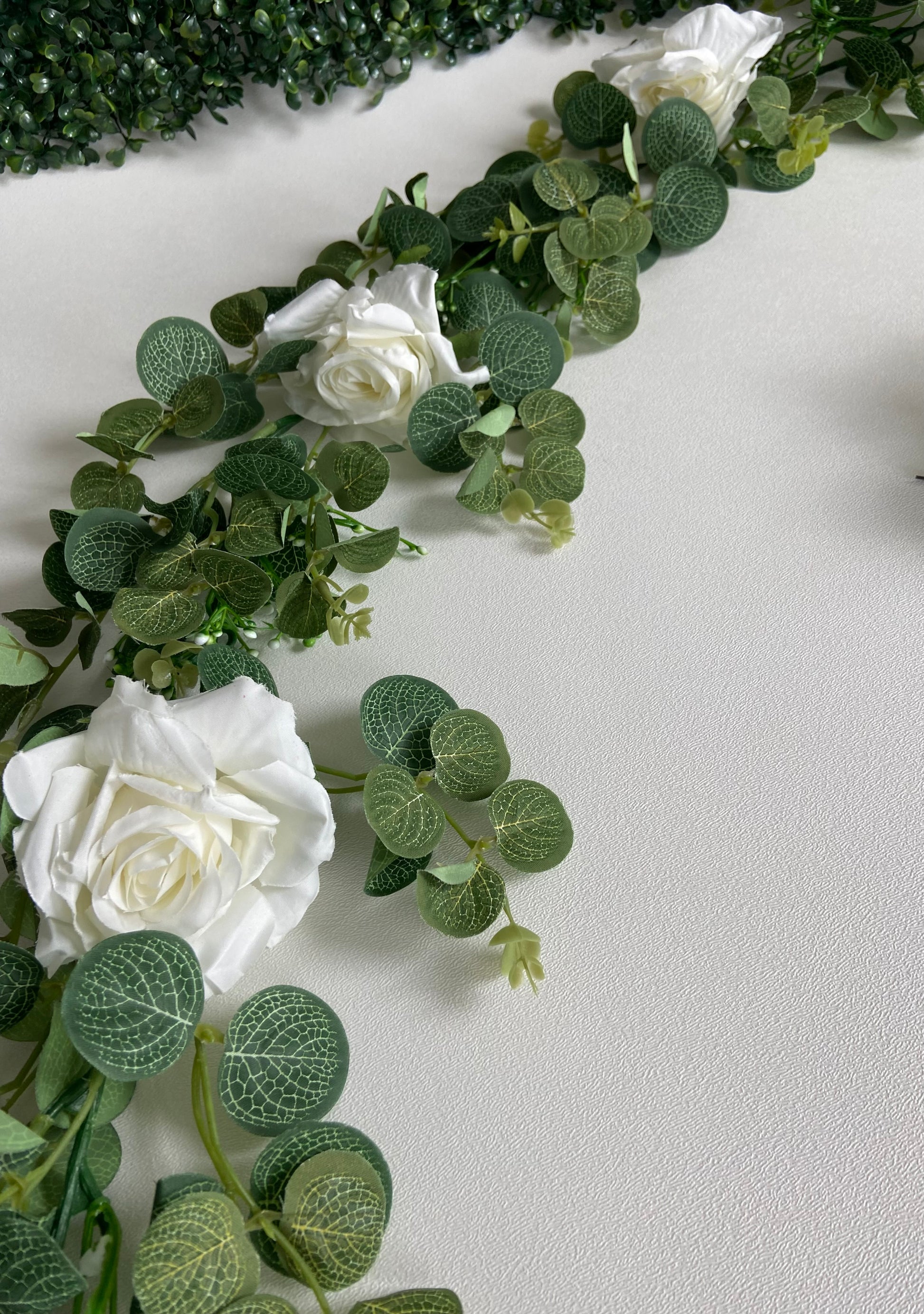 Enhance the natural beauty of your event with our lifelike eucalyptus garlands. These artificial vines are meticulously crafted with silk leaves and durable plastic vines, providing a realistic and long-lasting foliage option for your decor needs. Each vine stretches 6.5 ft long, adorned with lush 2.16-inch leaves, adding a touch of greenery to any space. Each silk flower measure 4 inches wide.