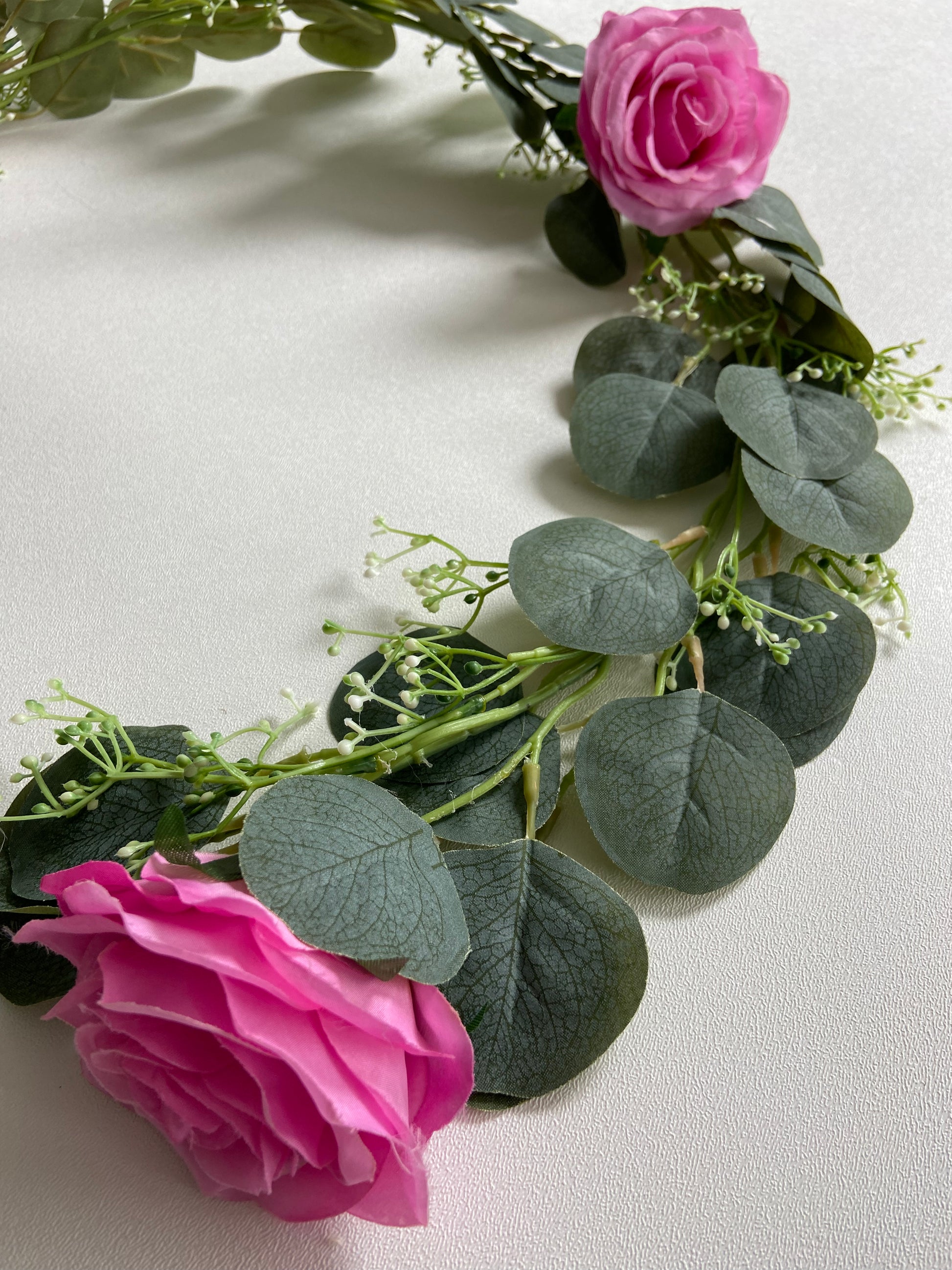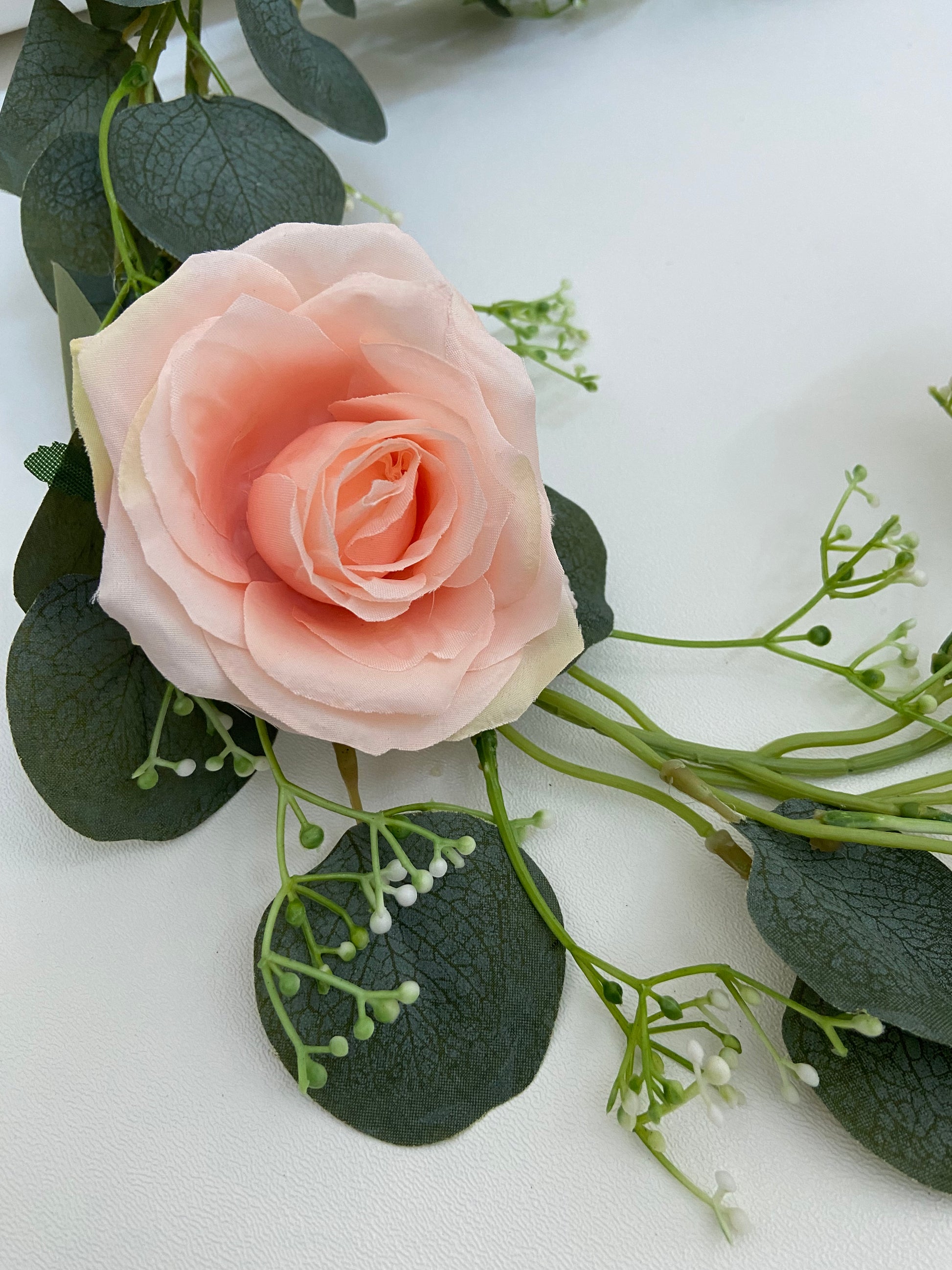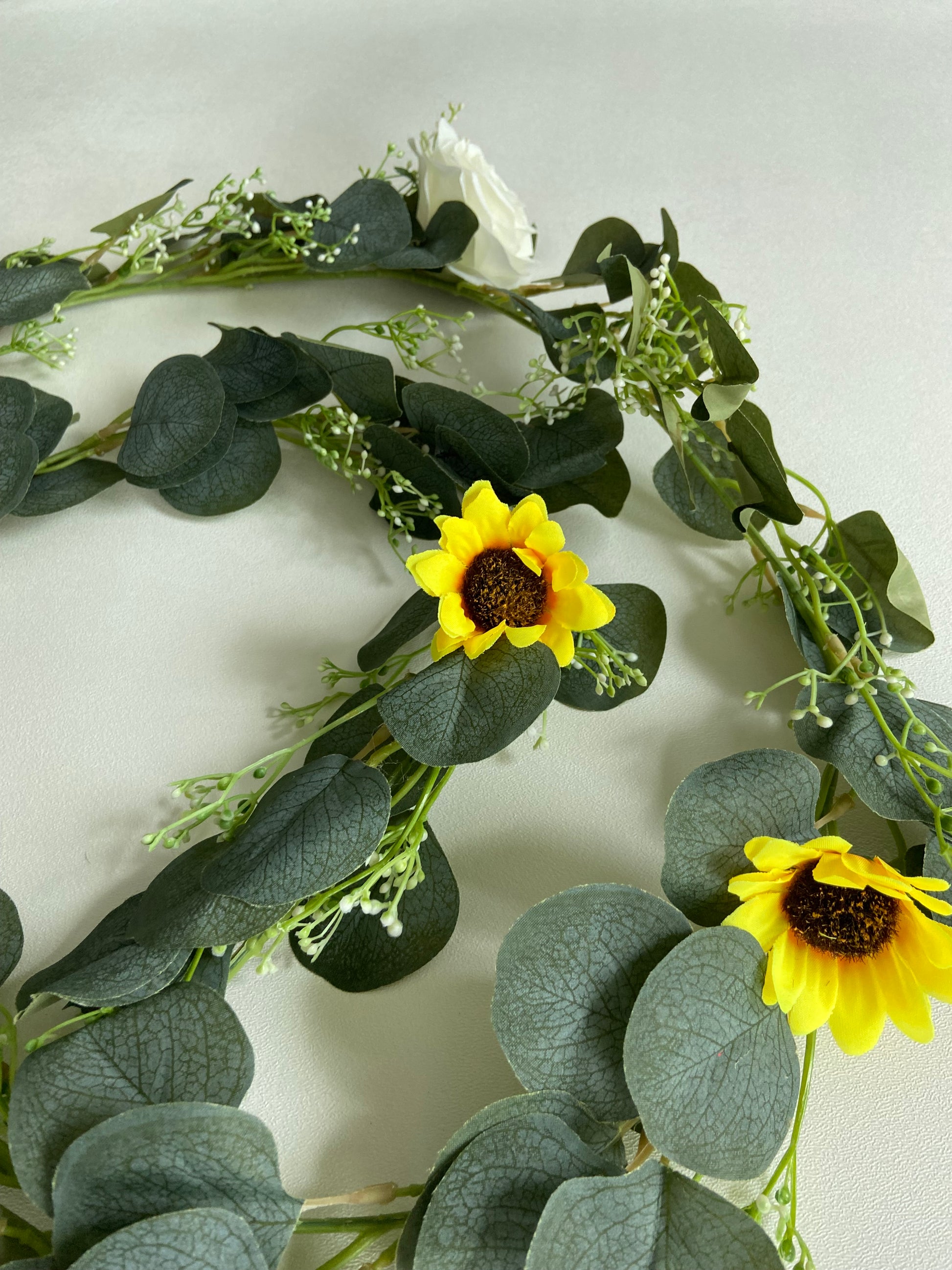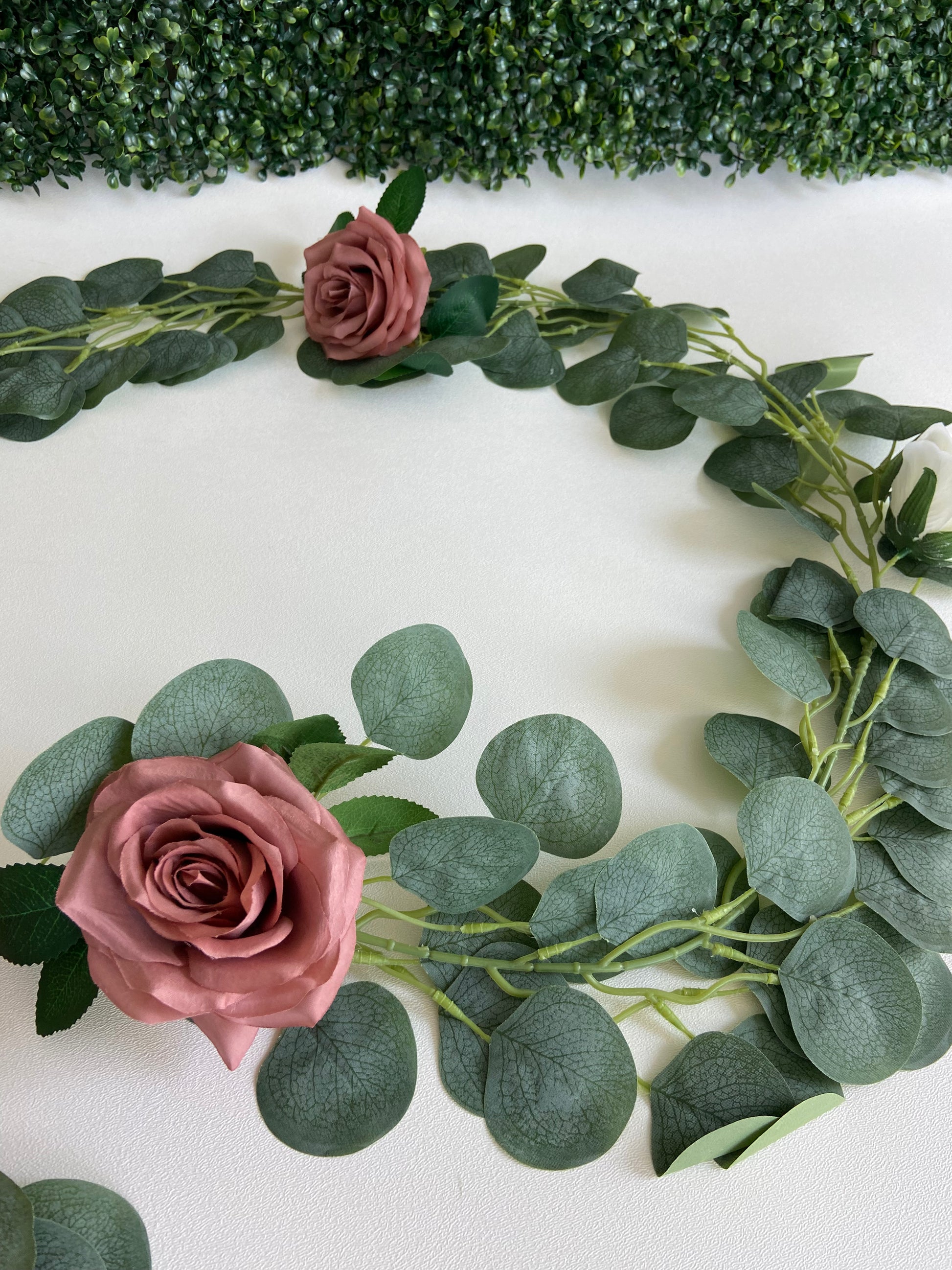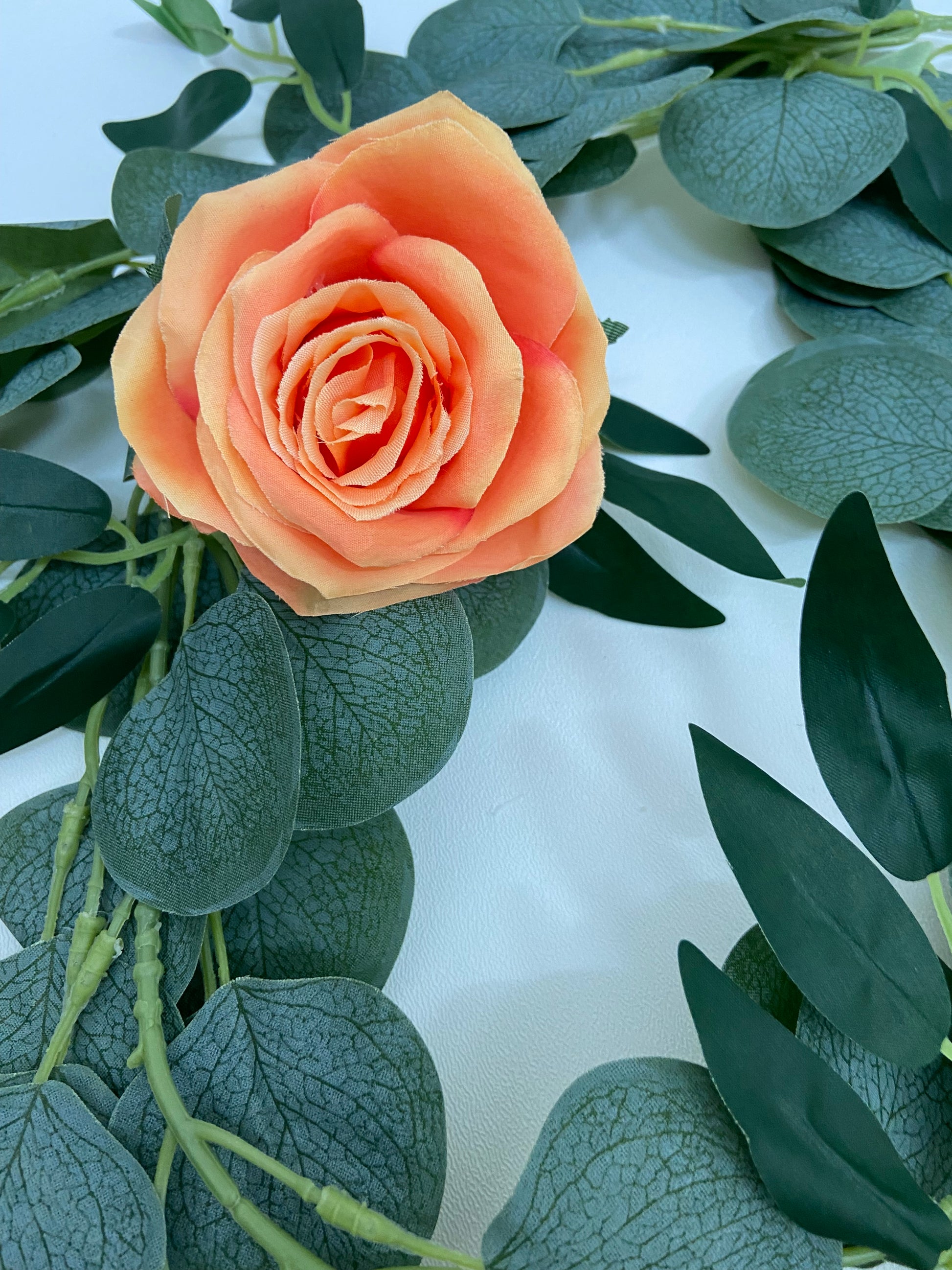Enhance the natural beauty of your event with our lifelike eucalyptus garlands. These artificial vines are meticulously crafted with silk leaves and durable plastic vines, providing a realistic and long-lasting foliage option for your decor needs. Each vine stretches 6.5 ft long, adorned with lush 2.16-inch leaves, adding a touch of greenery to any space. Each silk flower measure 4 inches wide.