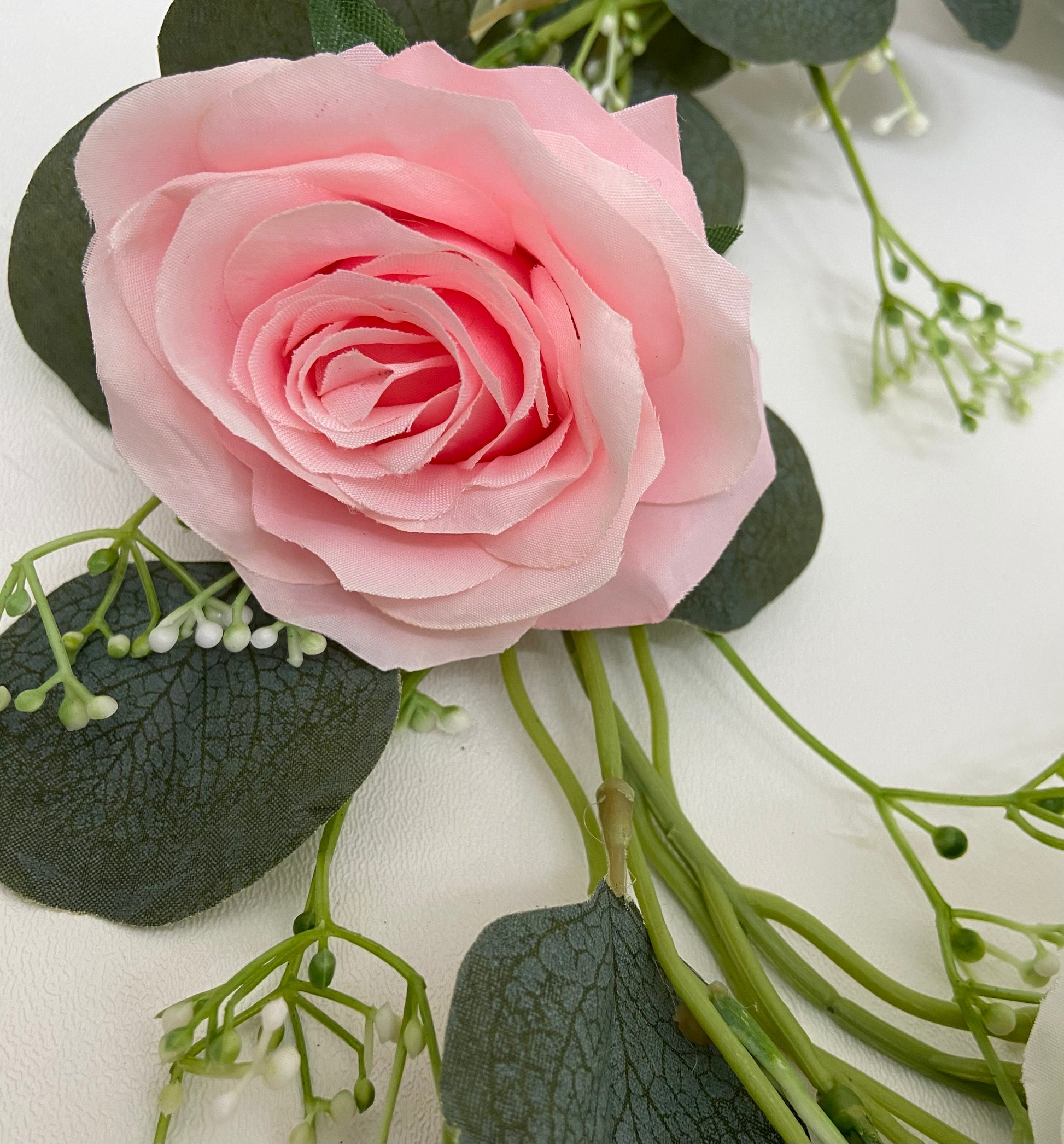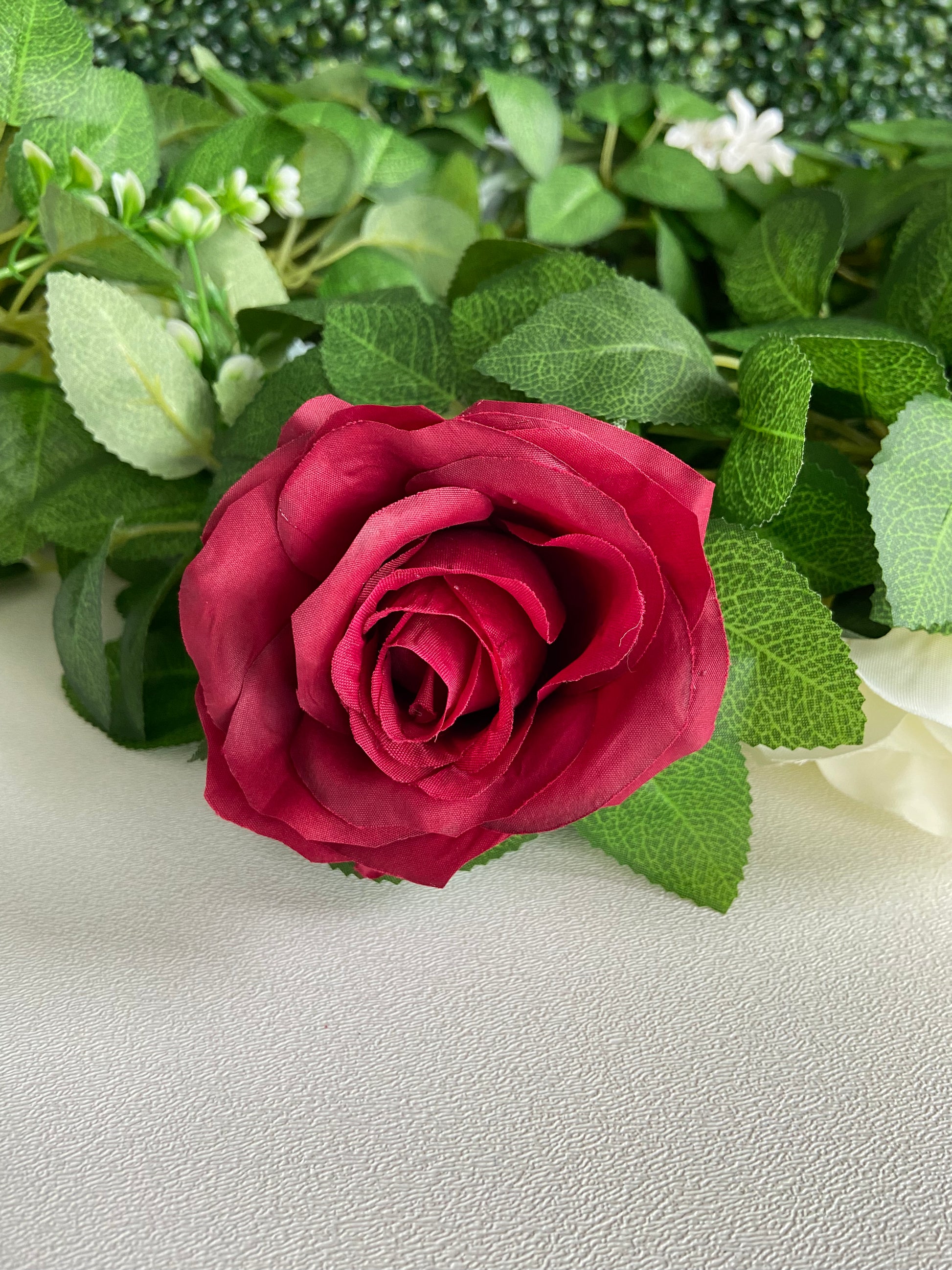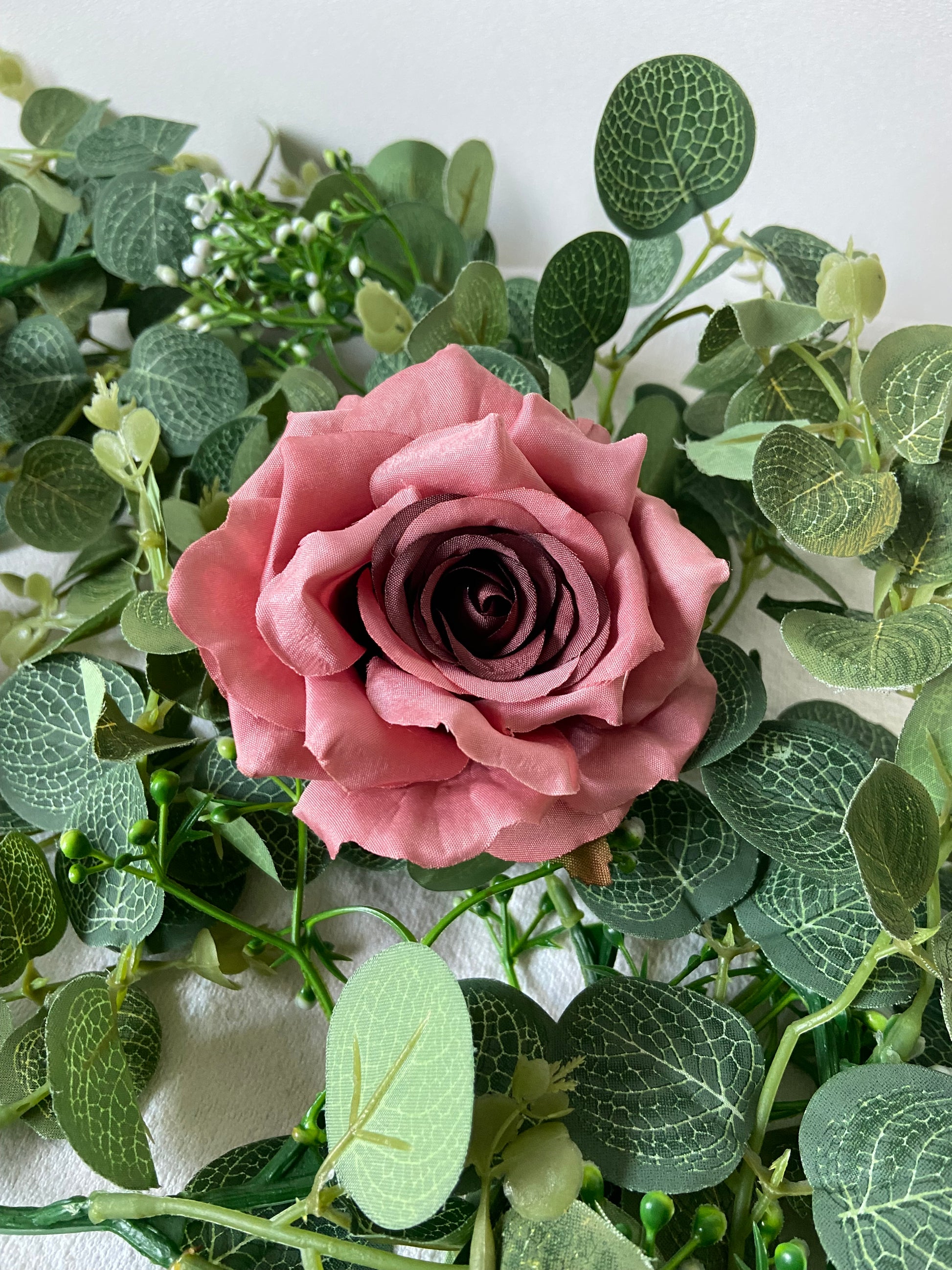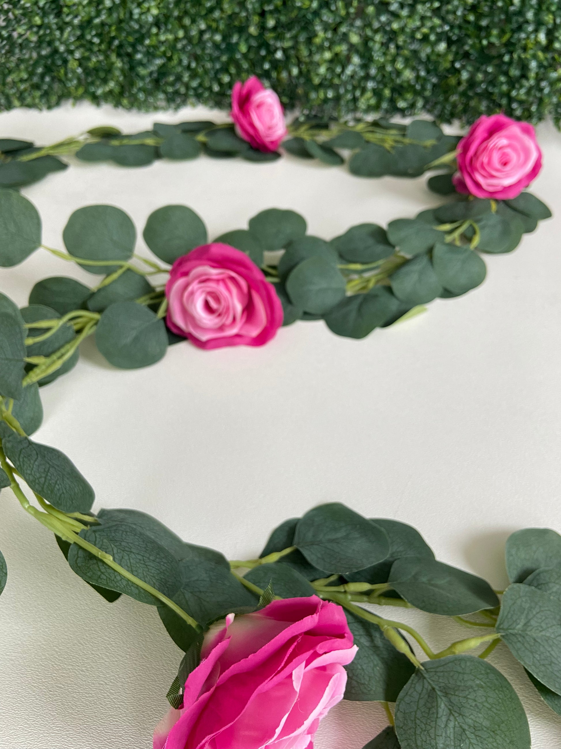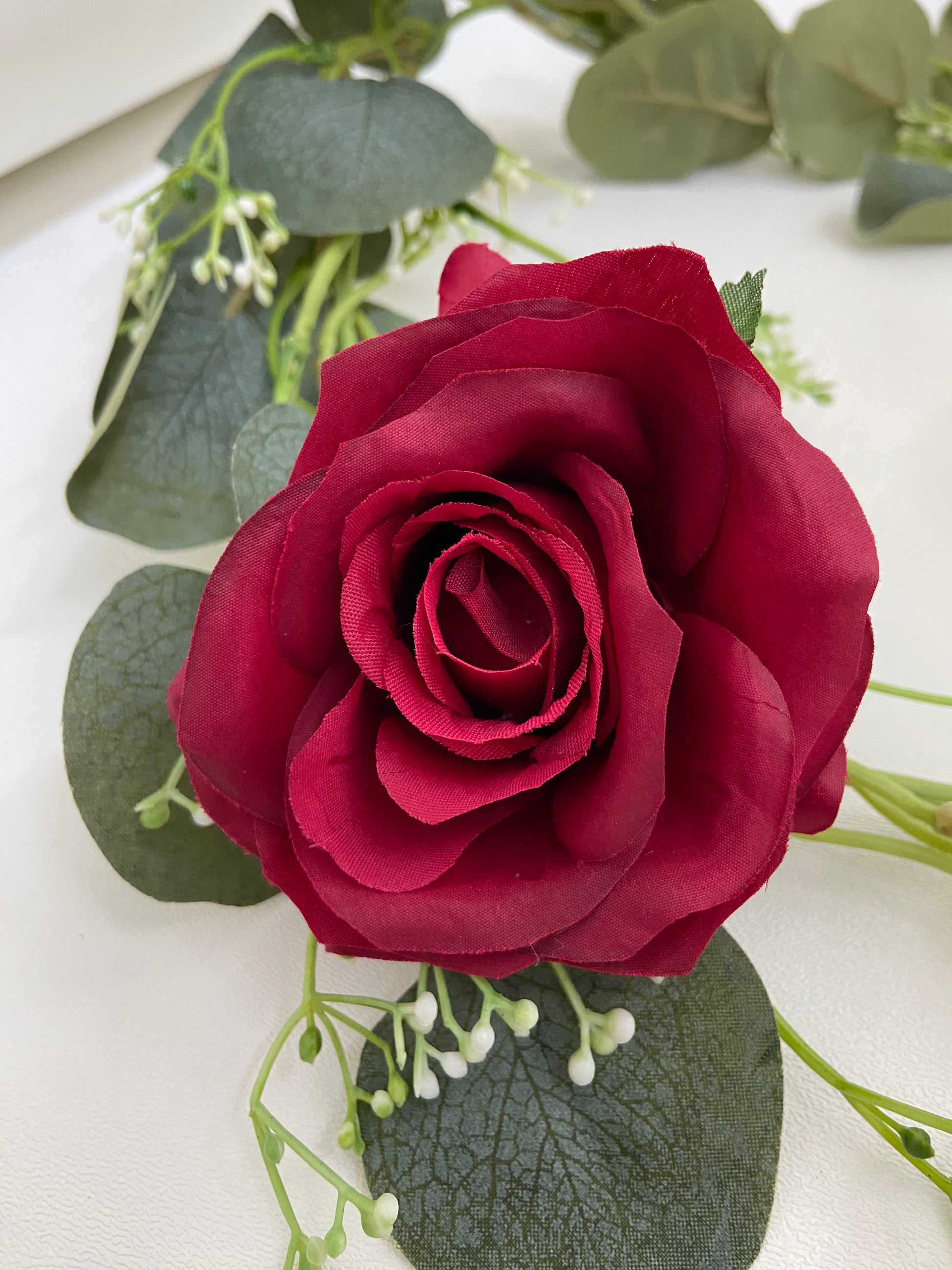 Enhance the natural beauty of your event with our lifelike eucalyptus garlands. These artificial vines are meticulously crafted with silk leaves and durable plastic vines, providing a realistic and long-lasting foliage option for your decor needs. Each vine stretches 6.5 ft long, adorned with lush 2.16-inch leaves, adding a touch of greenery to any space. Each silk flower measure 4 inches wide.