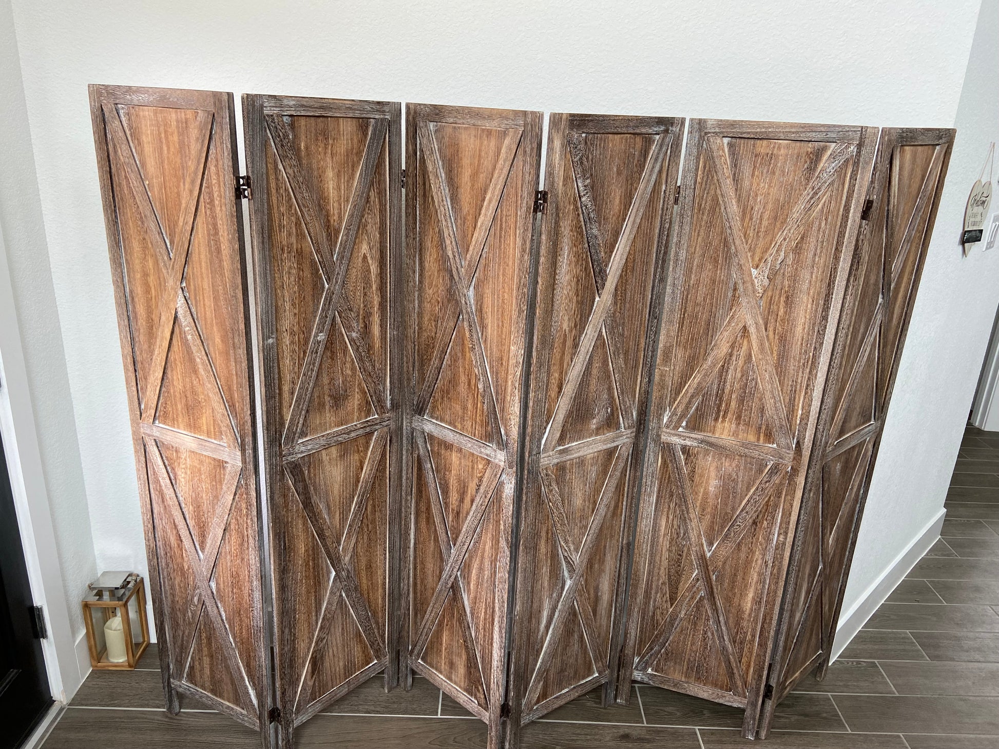 Transform your space with the charm of our Rustic 6 Panel Wood Room Divider. A great addition in any setting!